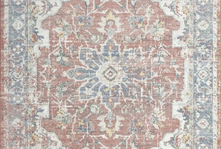 With a classic medallion Oriental pattern, this traditional indoor area rug features an opulent design in relevant colors. Vacuum on high pile setting to remove debris taking care to avoid fraying the edges. Rotate periodically to extend the life of your investment. Spot clean with mild detergent and water when necessary.