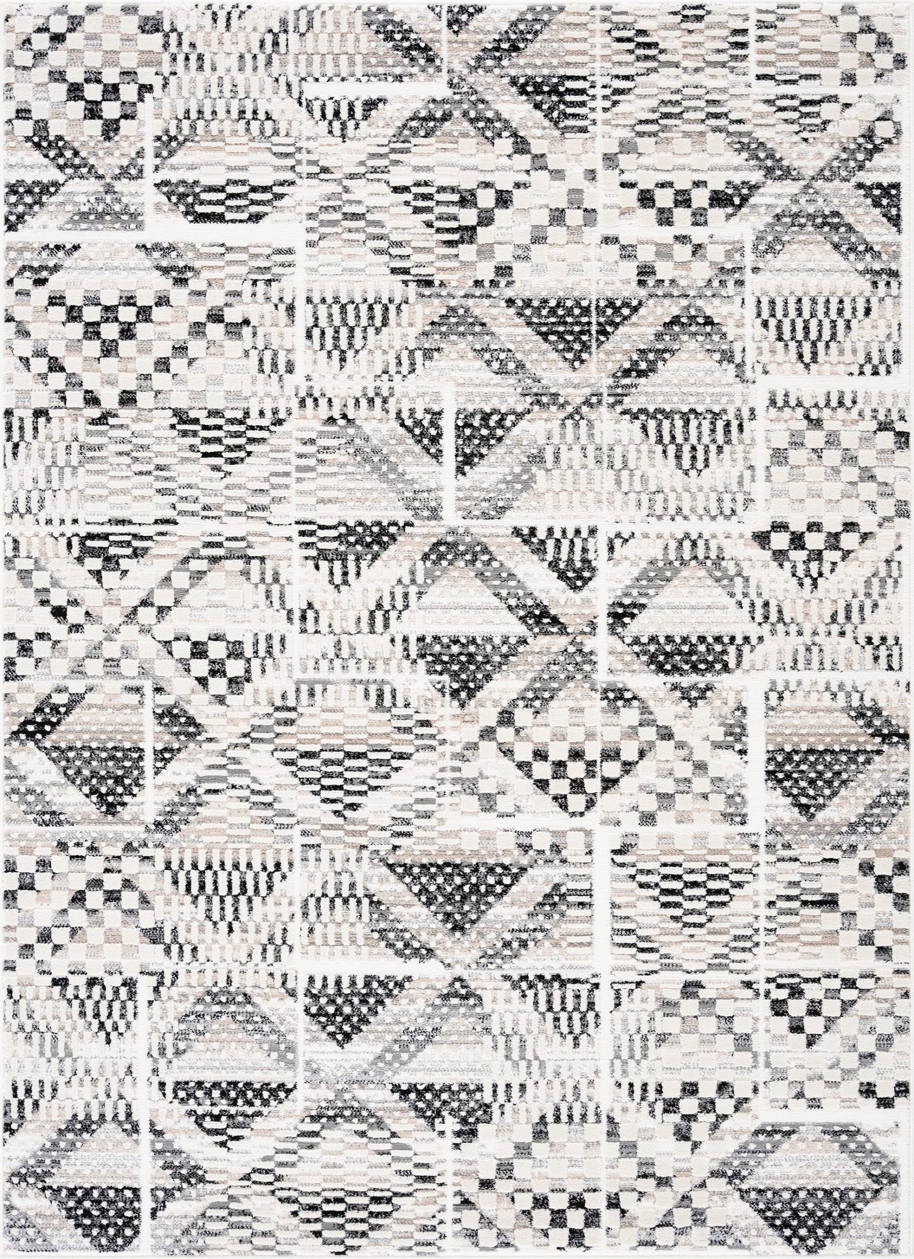Crafted with precision and attention to detail, this affordable yet luxurious contemporary area rug boasts a plush feel underfoot, creating a sumptuous experience for your home. The subtle high-low texture and shades of black, gray, beige, and cream not only enhances the visual appeal of the diamond pattern, but also adds depth and dimension to your living area.