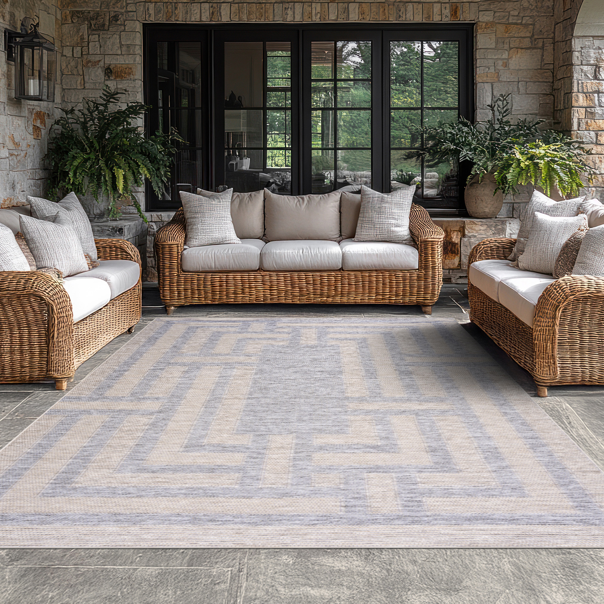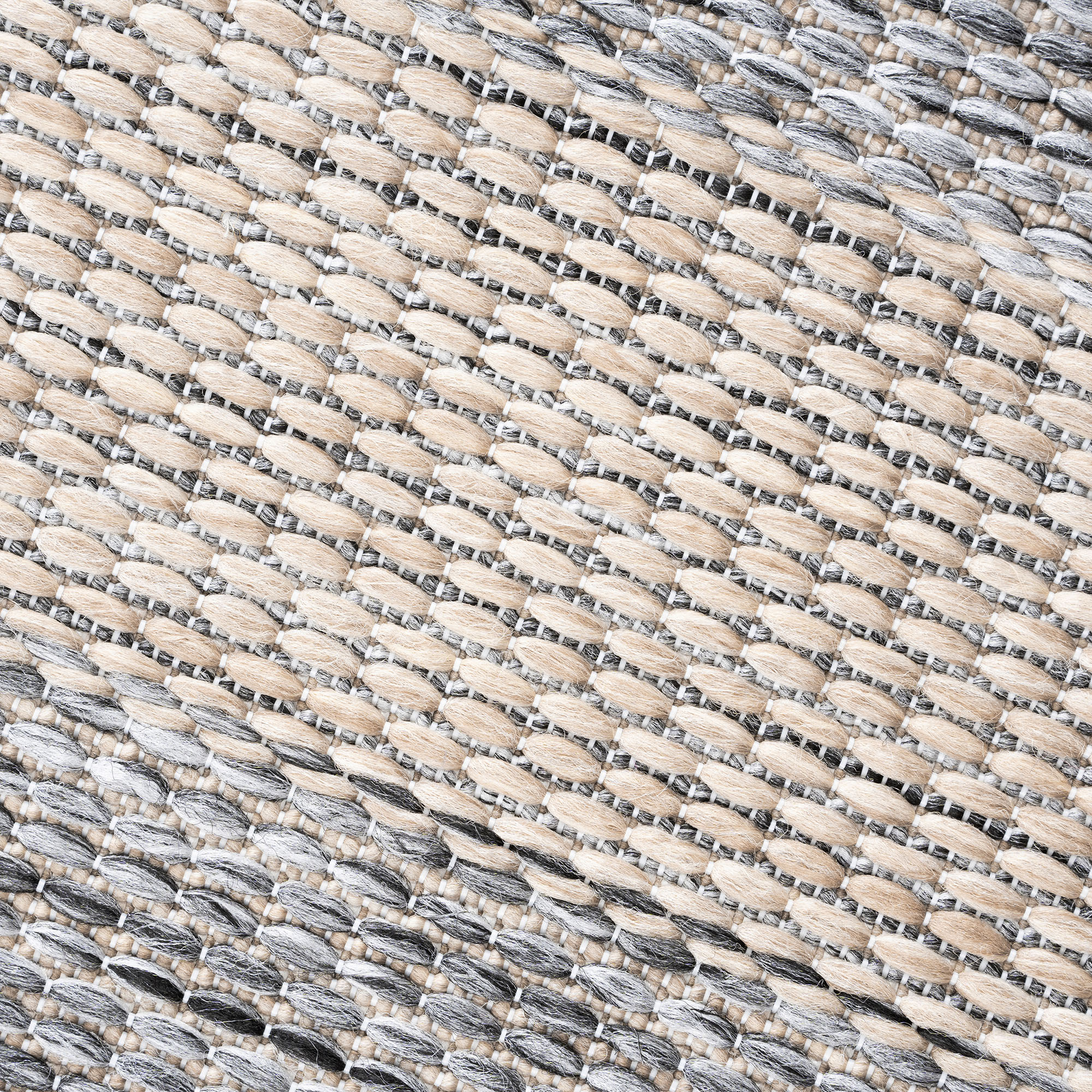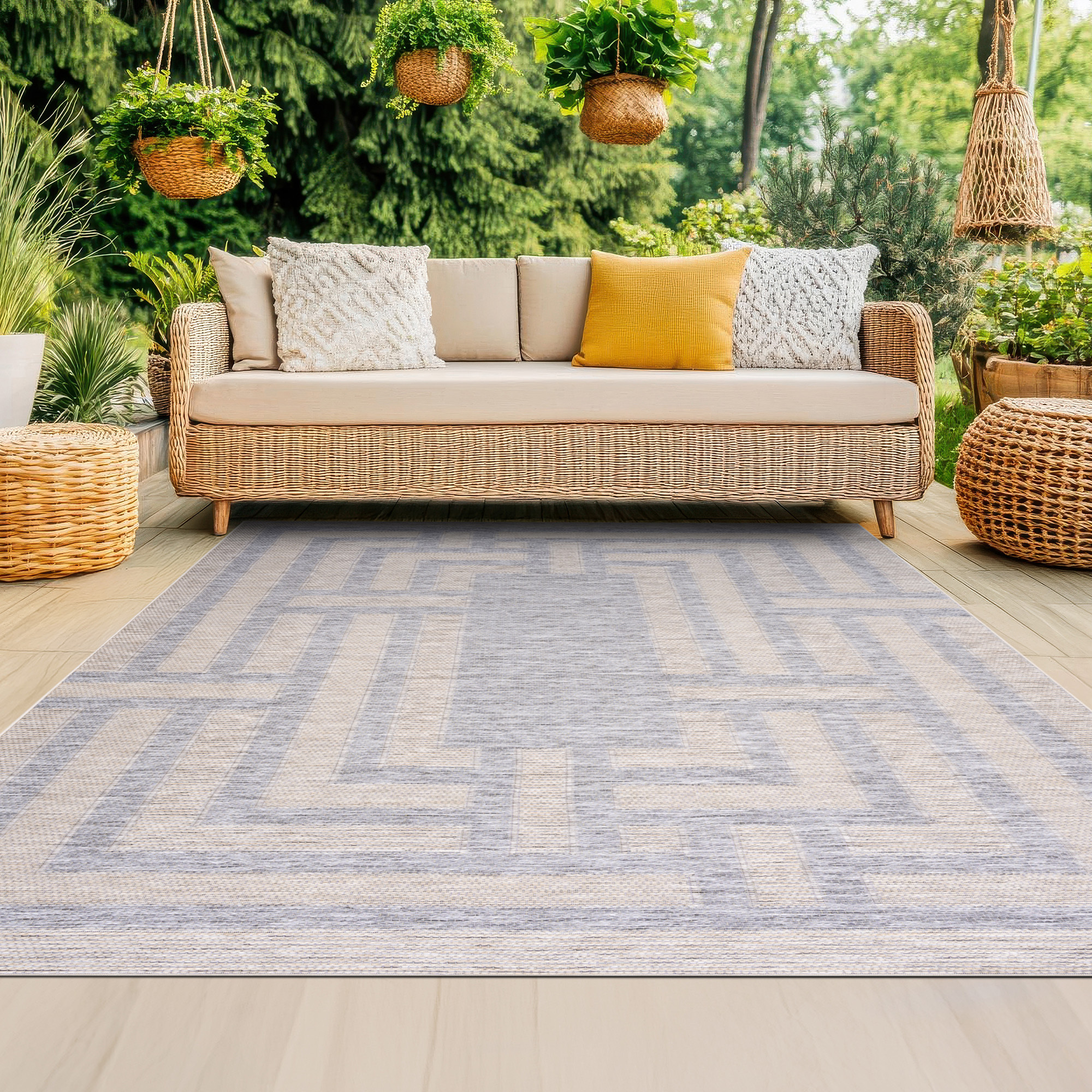 This outdoor area rug is crafted with precision and style, blending imaginative aesthetics with contemporary flair. This rug is made from flatwoven polypropylene, a durable and weather-resistant material, perfect for outdoor use. These neutral hues contribute to a sense of modern sophistication while allowing the unique geometric pattern to take center stage. The flatwoven texture adds depth and dimension to the rug, creating a visually stimulating yet harmonious effect. Sweep or vacuum without beater bar to remove debris. Clean outside with water from garden hose. Perfect for a balcony, courtyard, veranda, deck, mudroom, patio, porch, portico, or gazebo.
