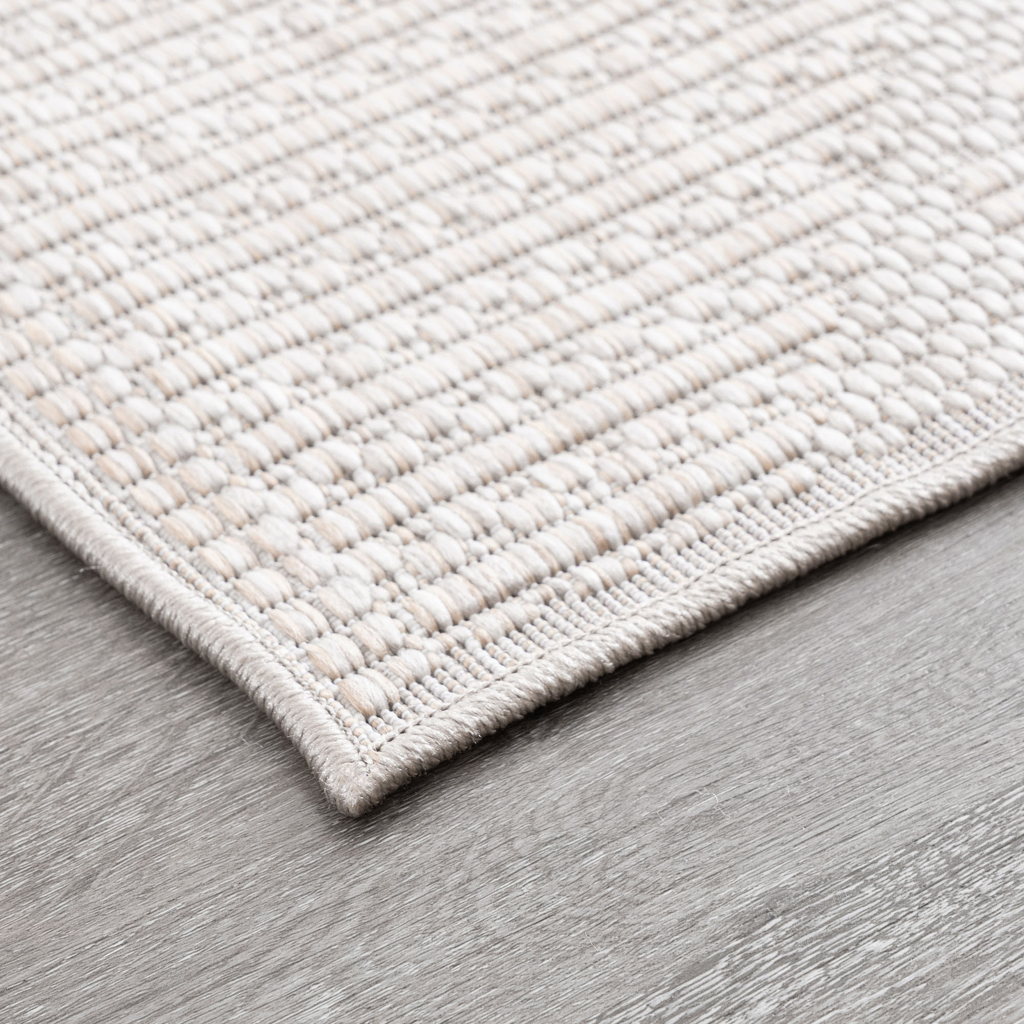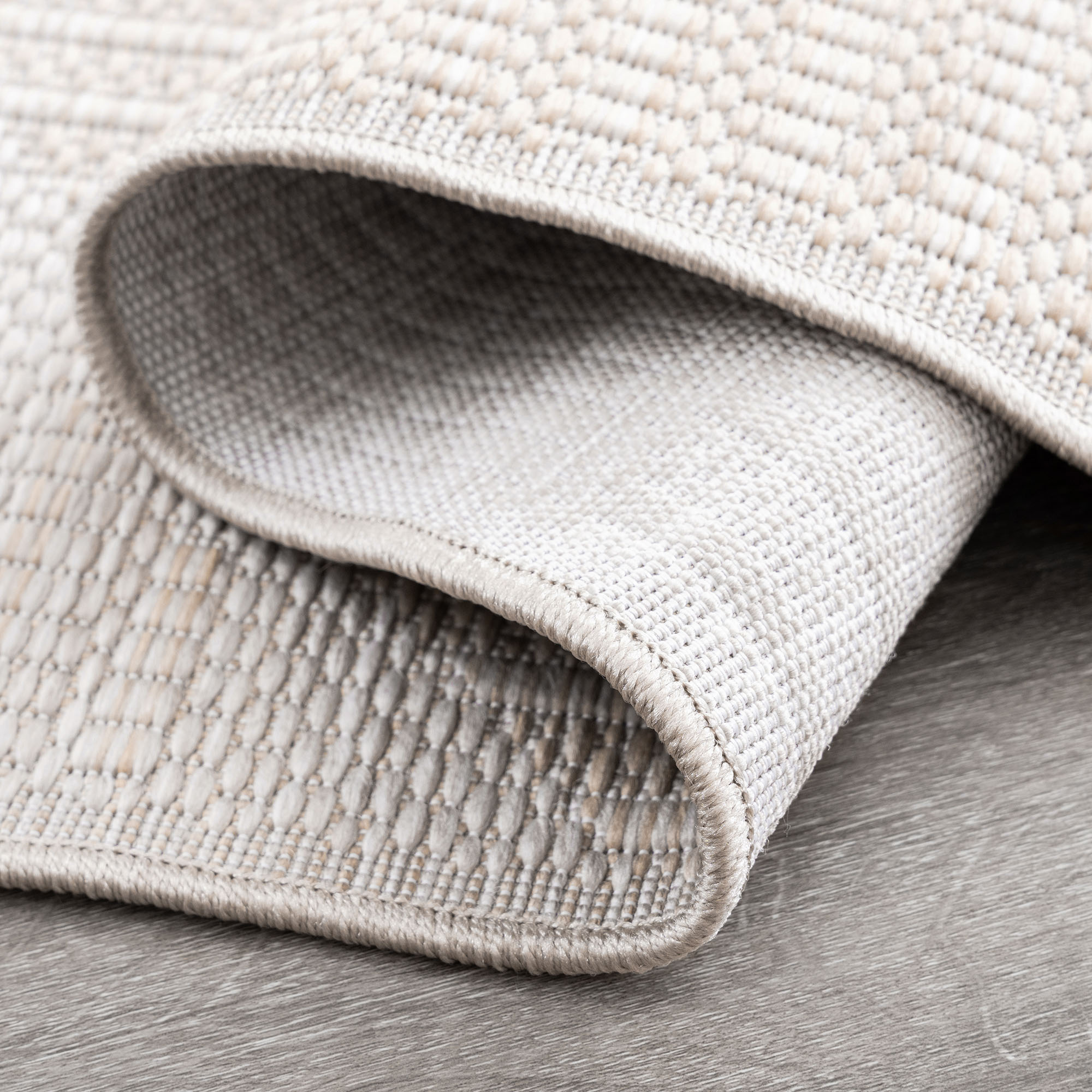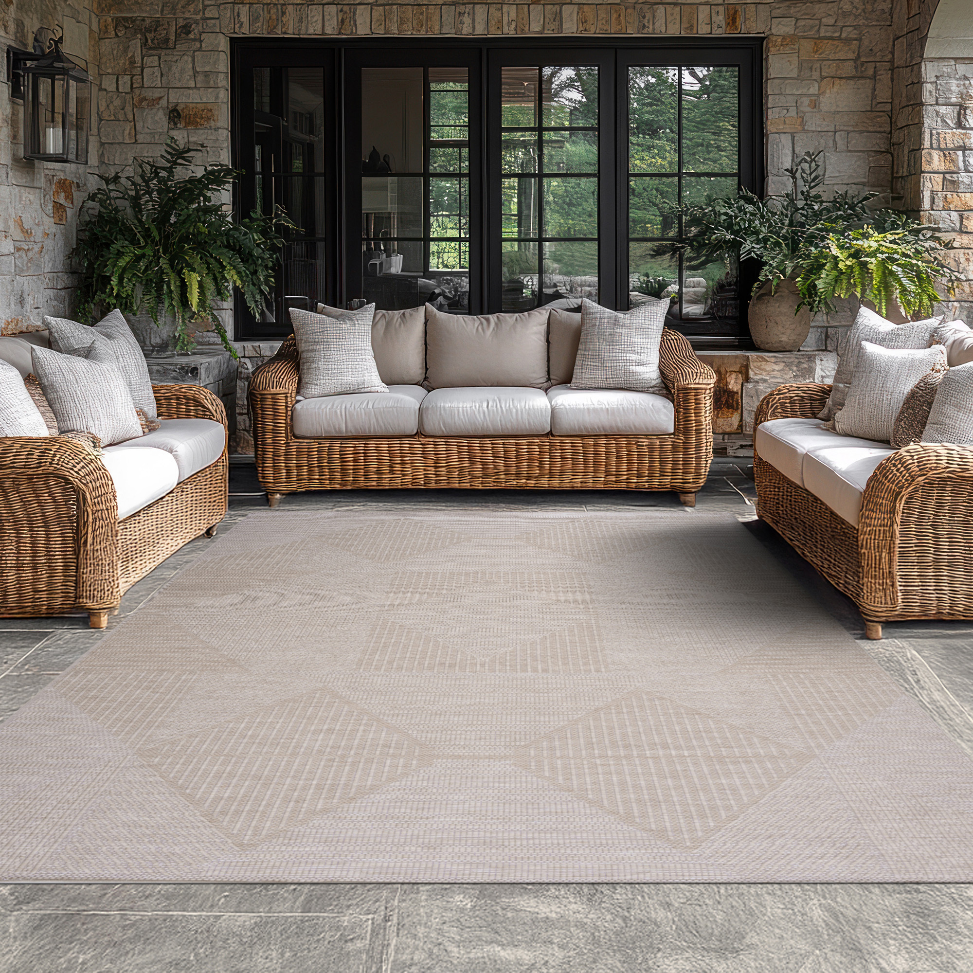 The contemporary style of this outdoor area rug not only enhances the aesthetics of your outdoor space but also serves as a conversation starter, reflecting your unique taste and appreciation for modern artistry. The neutral hues contribute to a sense of modern sophistication while allowing the unique pattern to take center stage. The flatwoven texture adds depth and dimension to the rug, creating a visually stimulating yet harmonious effect. Sweep or vacuum without beater bar to remove debris. Clean outside with water from garden hose. Perfect for a balcony, courtyard, veranda, deck, mudroom, patio, porch, portico, or gazebo.