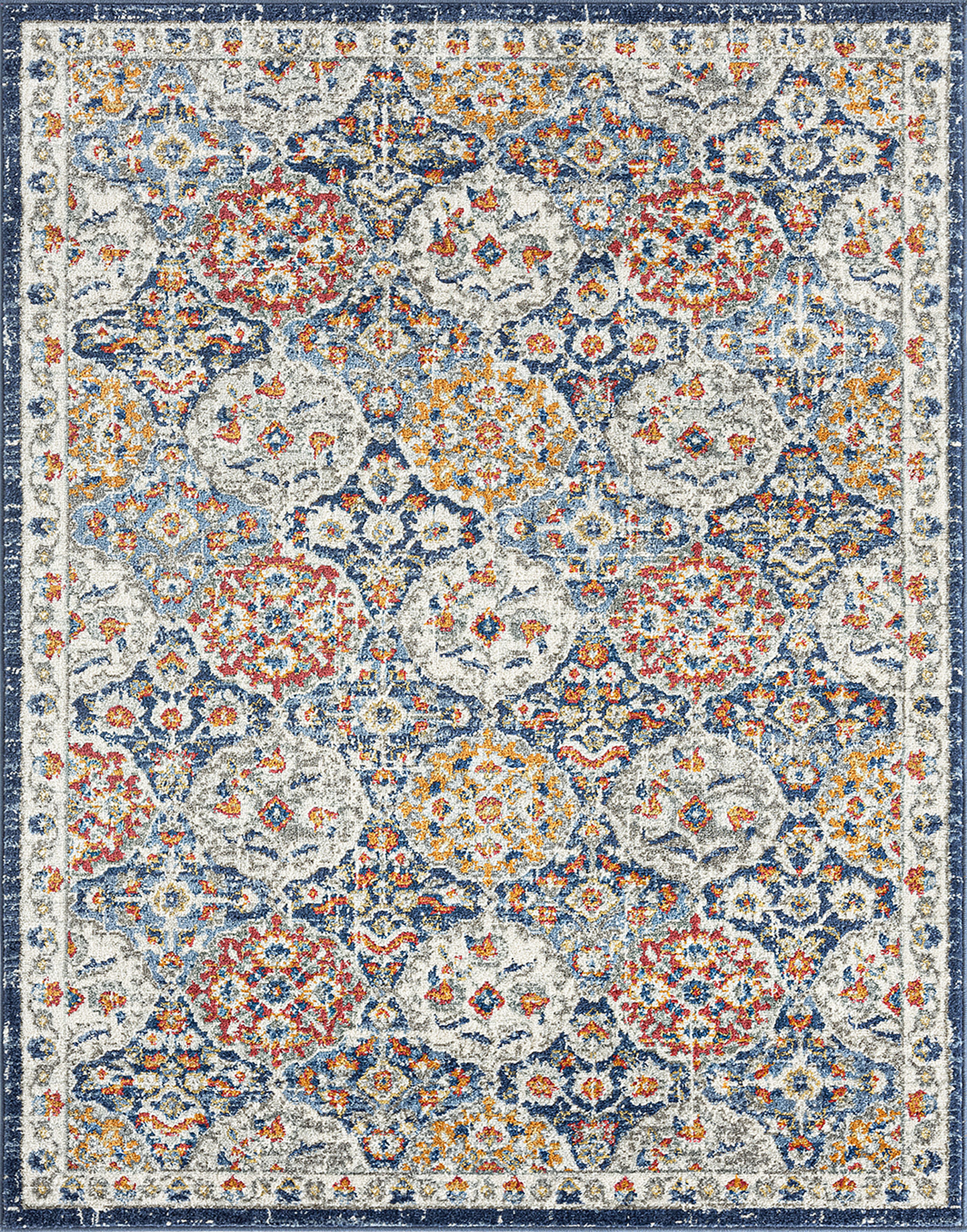 This colorful Boho style area rug offers comfort and elegance. The colorful Oriental pattern adds energy and feminine touch to any room. Natural stain-resistance and no additional treatments makes it kid and pet friendly.