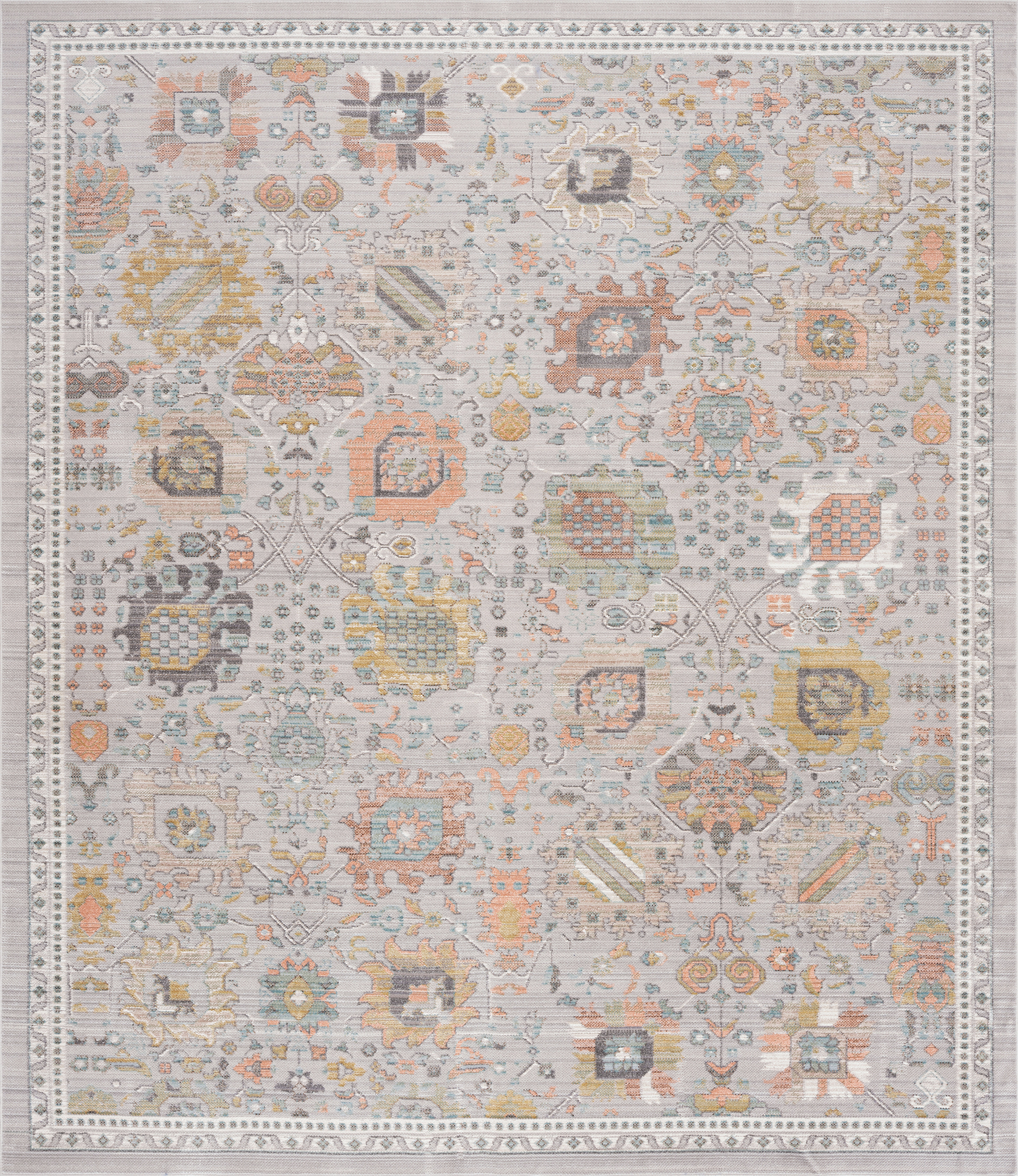 This elegant indoor area rug showcases an intricate, all-over Oriental pattern filled with stylized floral motifs. The rug is finished with a detailed border featuring a repeating, smaller-scale design element that frames the central pattern. This rug will enhance various spaces like a living room, dining room, bedroom, or study, adding a layer of visual texture and sophistication. Its detailed design would complement traditional, transitional, bohemian, eclectic, and even some contemporary interior design styles, providing a focal point with its rich ornamentation.