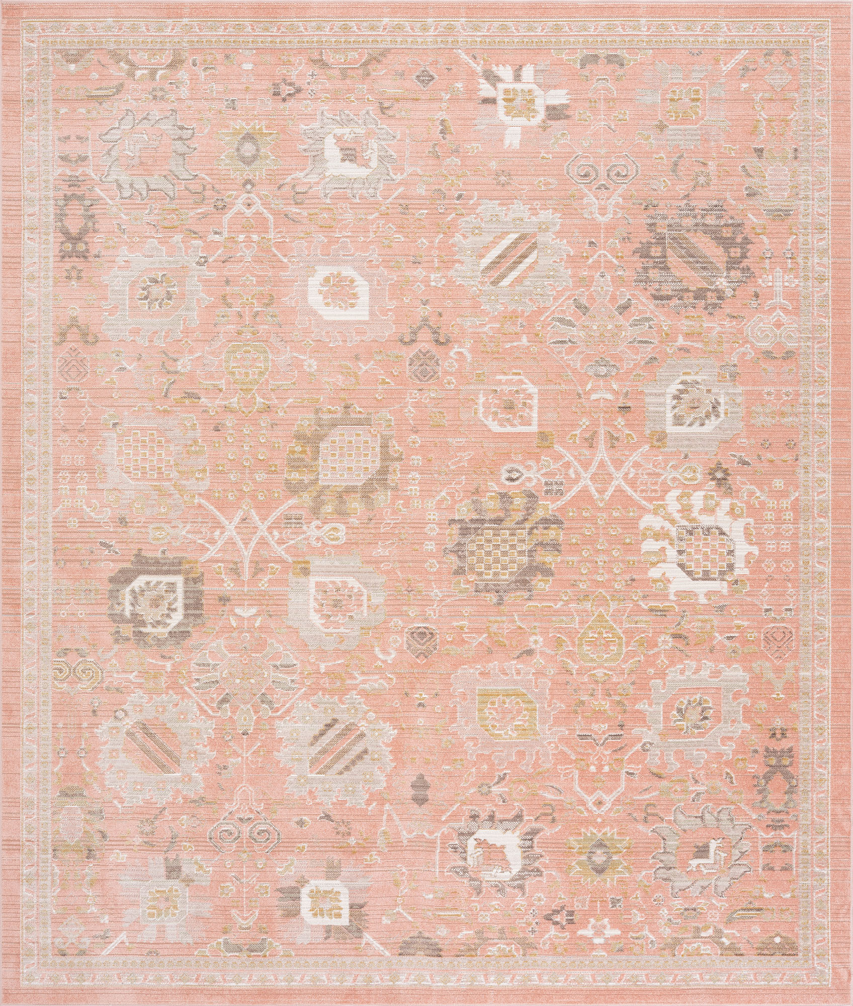 This elegant indoor area rug showcases an intricate, all-over Oriental pattern filled with stylized floral motifs. The rug is finished with a detailed border featuring a repeating, smaller-scale design element that frames the central pattern. This rug will enhance various spaces like a living room, dining room, bedroom, or study, adding a layer of visual texture and sophistication. Its detailed design would complement traditional, transitional, bohemian, eclectic, and even some contemporary interior design styles, providing a focal point with its rich ornamentation.