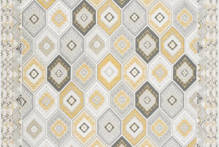 This reversible indoor outdoor area rug has a hexagonal pattern and colorful palette which makes it easy to love. The boho style will make the perfect backdrop for your space and can be cleaned with water from a garden hose then left to air dry. Use it on a patio, deck, for balcony decor, as a camping rug, or kitchen rug. Also great for sun-room, deck, playroom, nursery, entryway, den, living room, or family room.