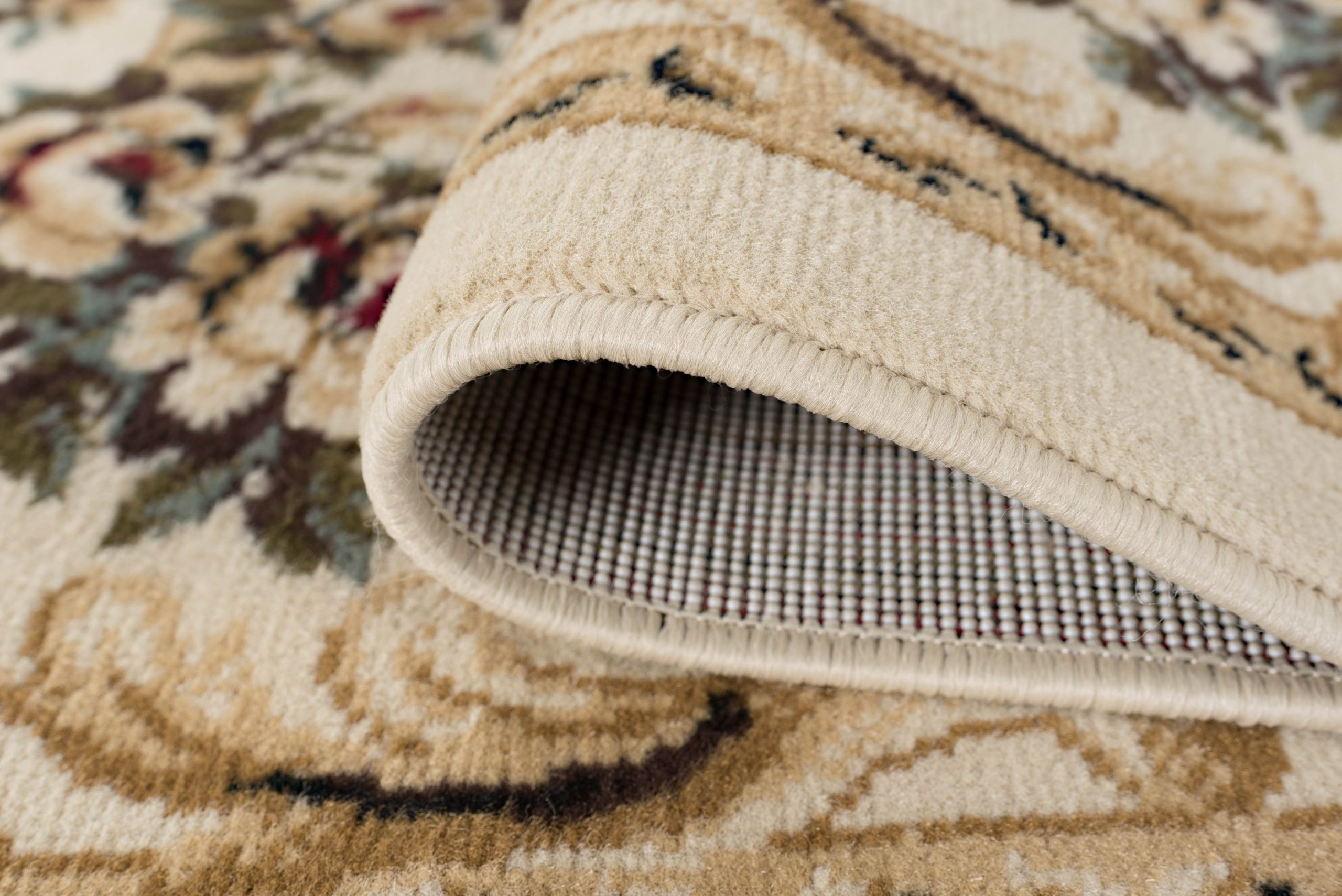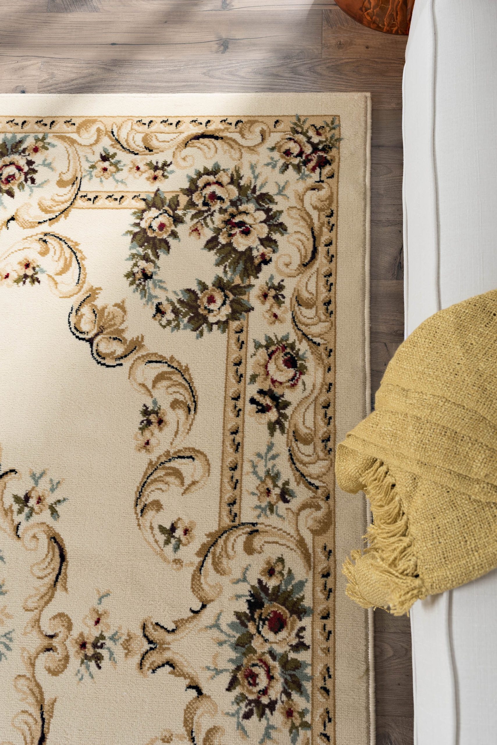 Bring timeless elegance to your home with this area rug. This gorgeous design features a charming floral medallion pattern in shades of beige, red and green on a vibrant red background. The beige border is finely detailed and highlighted with brown, green and red. The traditional design is complemented by durable 100% polypropylene construction for confident placement in any setting. It is sure to provide comfort and delight for years to come. This rug is available in several individual sizes and as a three piece set so you can harmonize your theme throughout your home.