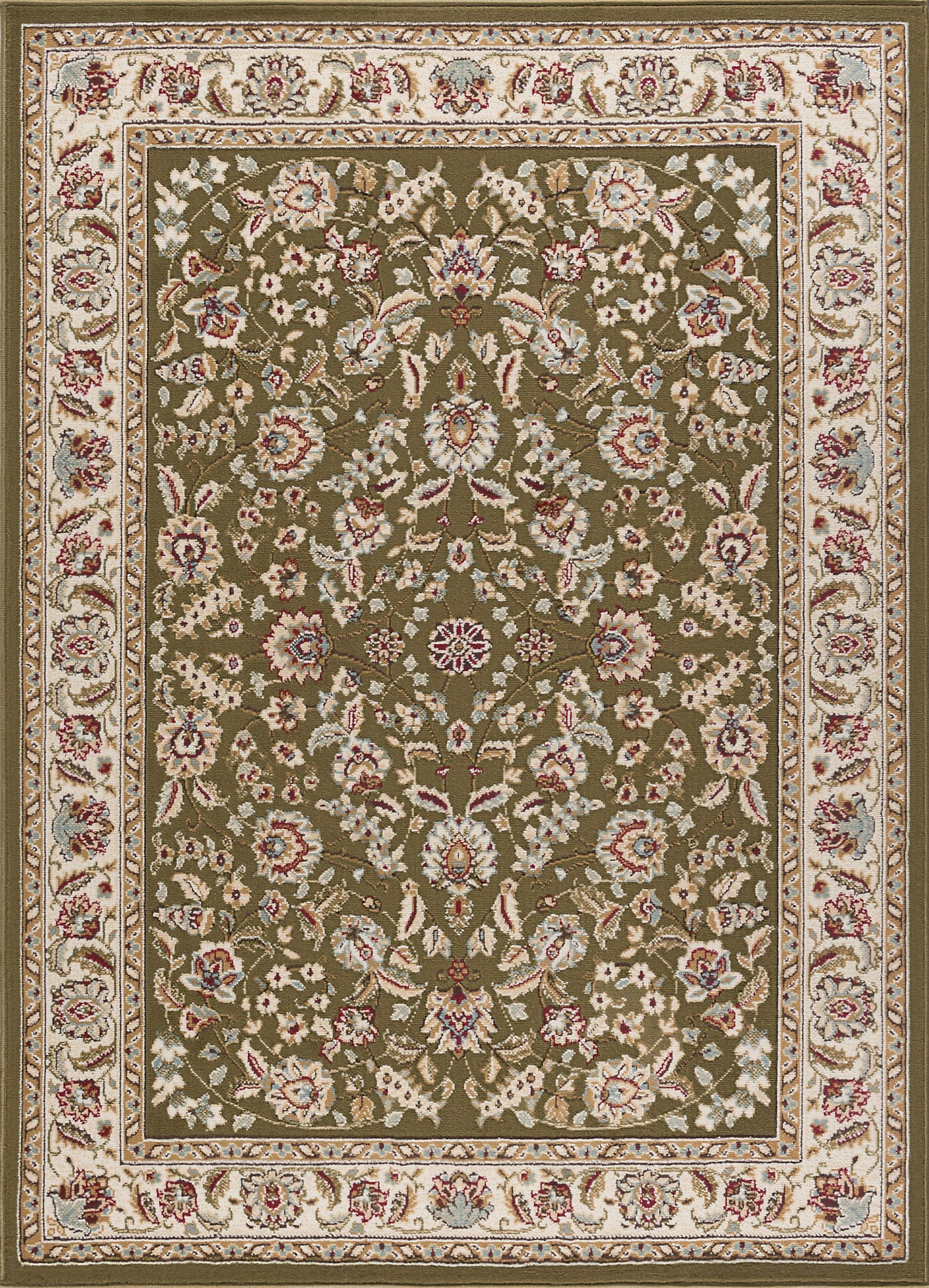 A luxurious and intricate oriental design define this traditional area rug. Perfect to add a touch of refinement to any room. Red background with gold, ivory, bronze, blue, and green. Available in several individual sizes and as a three piece set so you can harmonize your theme throughout your home. It is easy to care for, vacuum regularly to maintain its appearance. Spot clean as needed with mild detergent, do not dry clean or bleach.