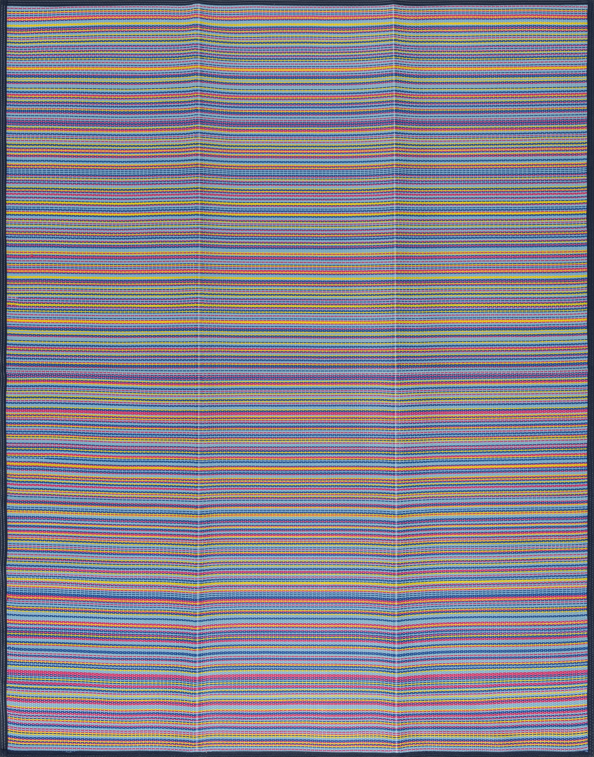 This multi-use foldable, waterproof outdoor rug is perfect for any adventure. Use this portable, reversible area rug mat for playroom, exercise, poolside, camping, or picnic. In a colorful candy stripe pattern. Natural stain-resistance and no additional treatments makes it kid and pet friendly. Vacuum or shake to remove debris. Spot clean or clean outside with water; spray with garden hose to rinse. Allow to dry thoroughly.