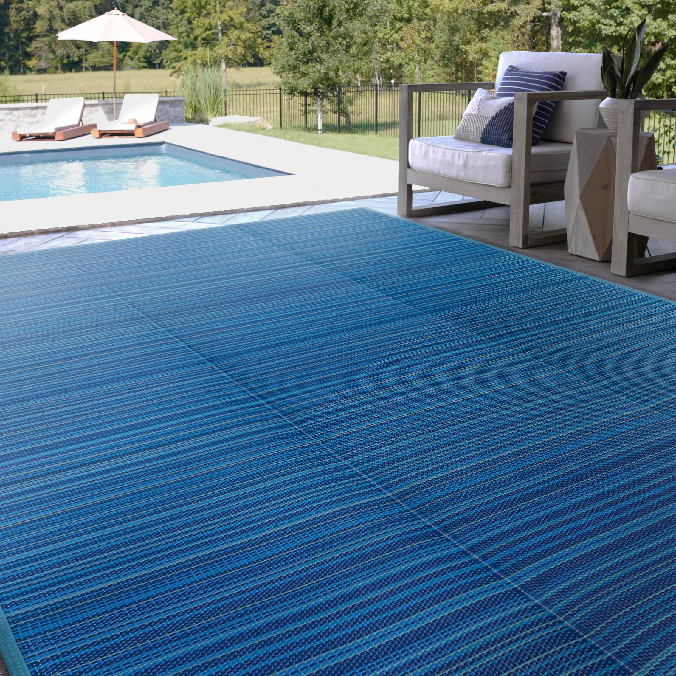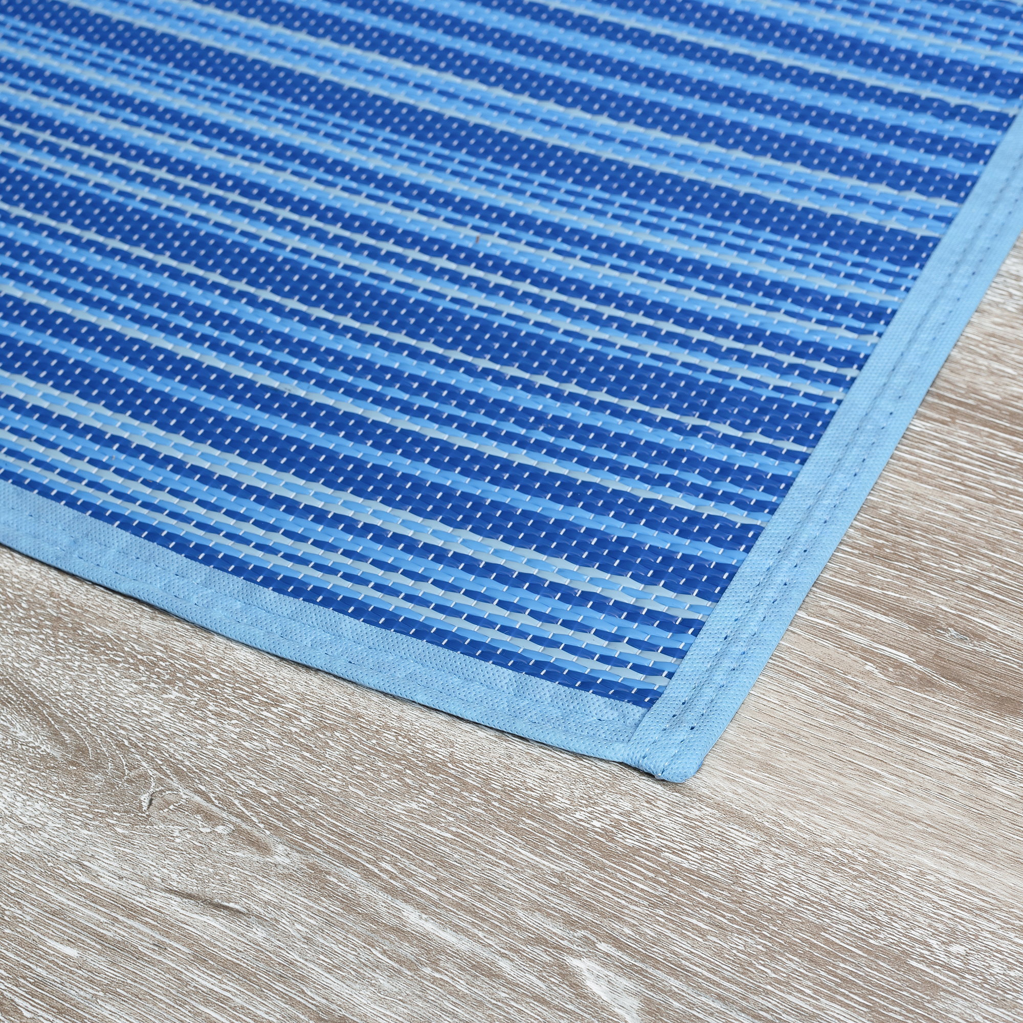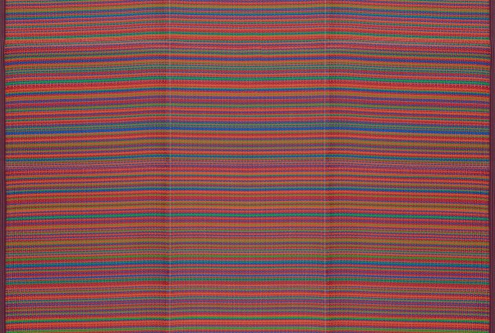 This multi-use foldable, waterproof outdoor rug is perfect for any adventure. Use this portable, reversible area rug mat for playroom, exercise, poolside, camping, or picnic. In a colorful candy stripe pattern. Natural stain-resistance and no additional treatments makes it kid and pet friendly. Vacuum or shake to remove debris. Spot clean or clean outside with water; spray with garden hose to rinse. Allow to dry thoroughly.