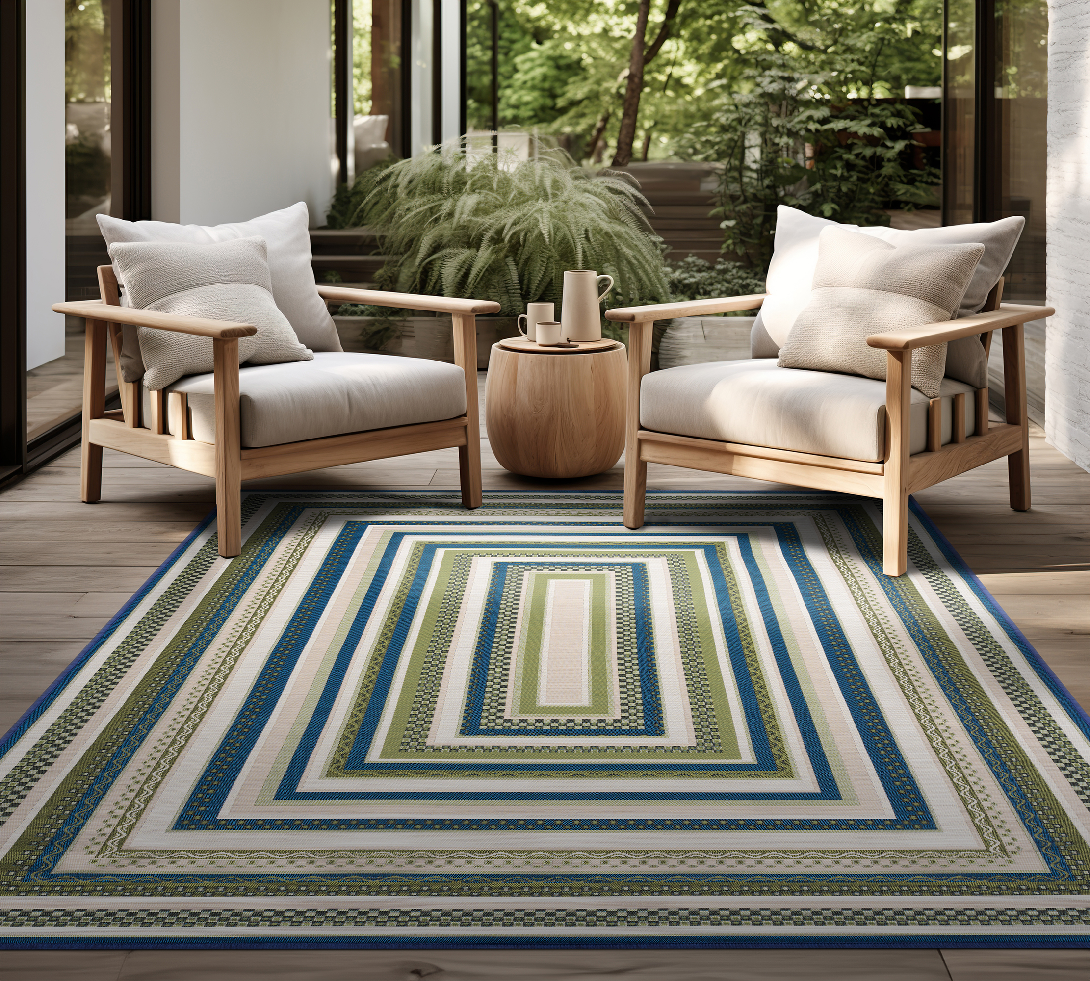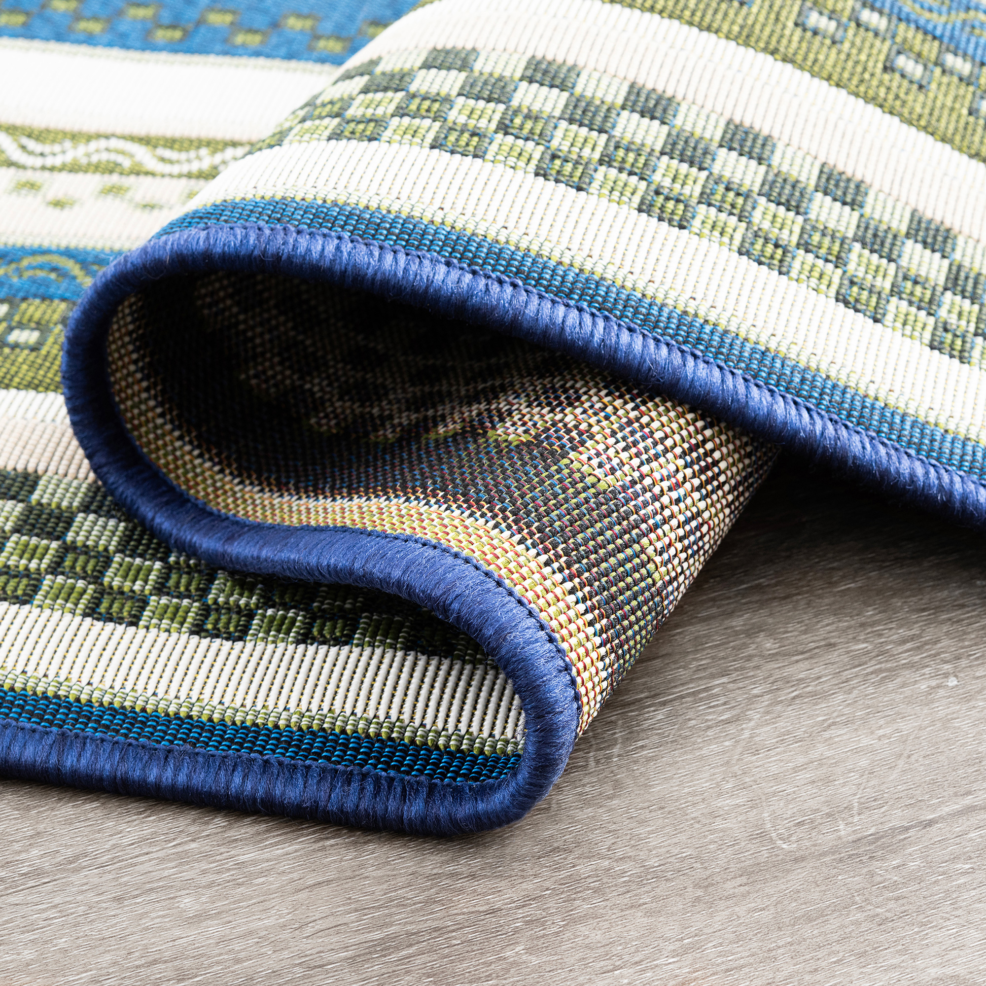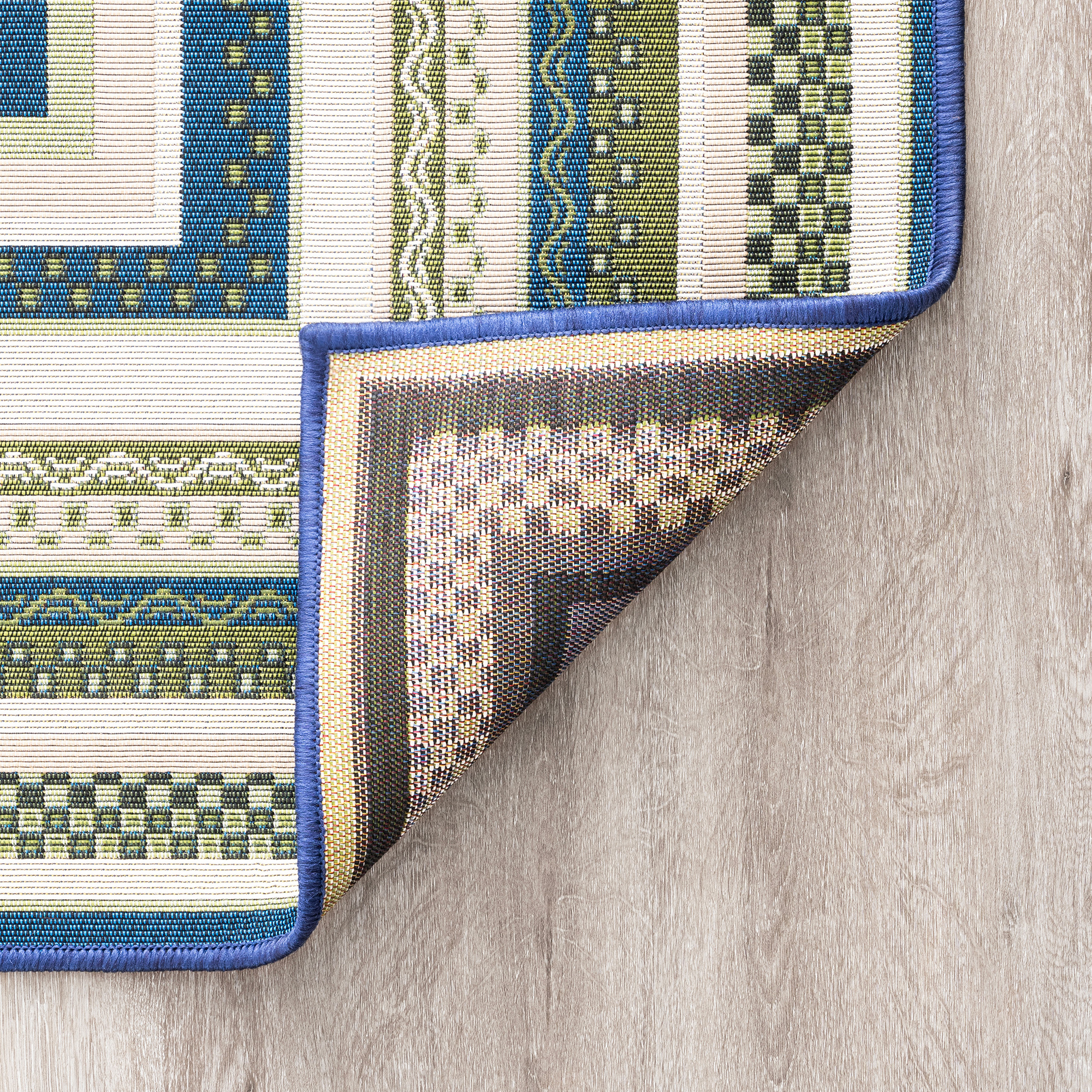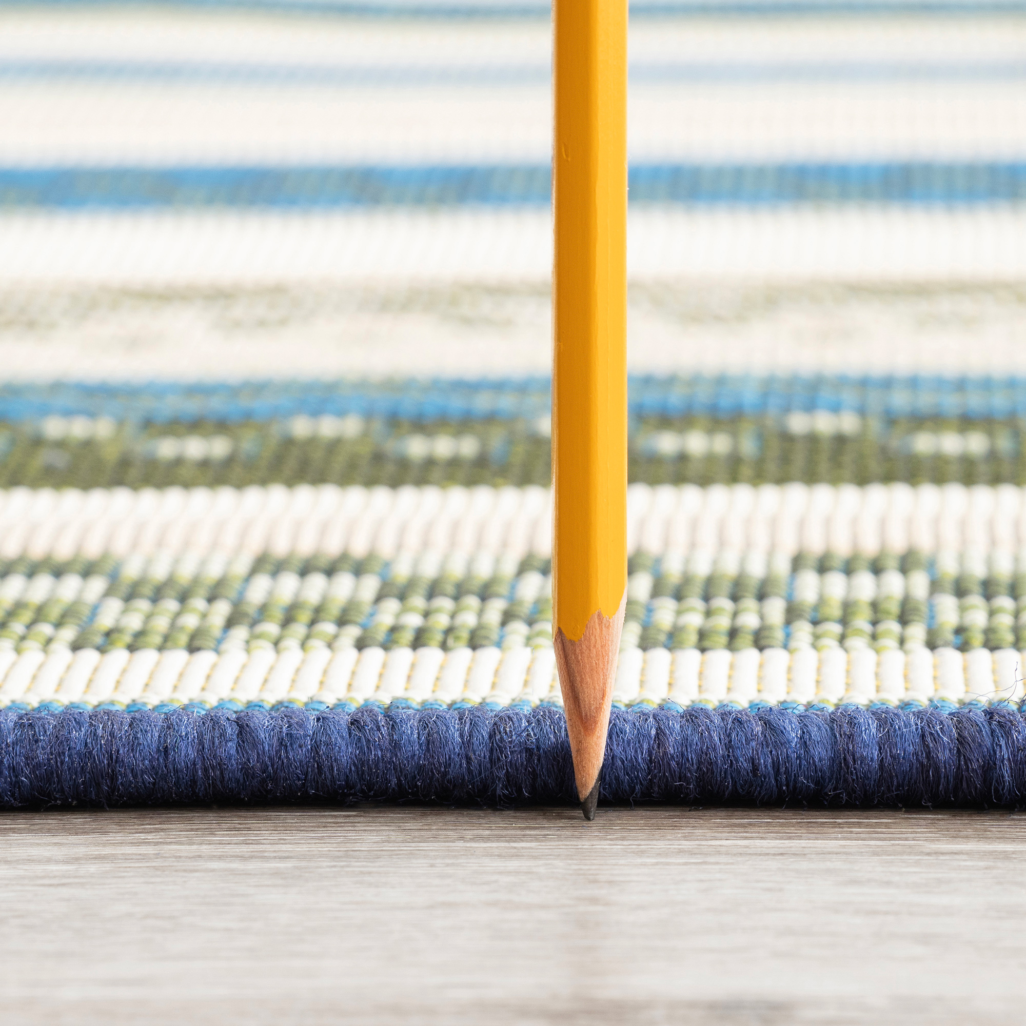 This indoor outdoor rug is crafted to resist fading from exposure to sunlight and is mold and mildew resistant. Additionally, it is easy to clean, allowing you to maintain its fresh and inviting appearance. Whether placed on a patio, deck, or any outdoor gathering space, this rug can add a refreshing and stylish element to your outdoor decor. Easy-care. Sweep or vacuum on high pile setting to remove debris. Clean with water from a garden hose and hang to dry. A delightful burst of colors with its vivid and contrasting stripes. A versatile and eye-catching addition to your outdoor decor.