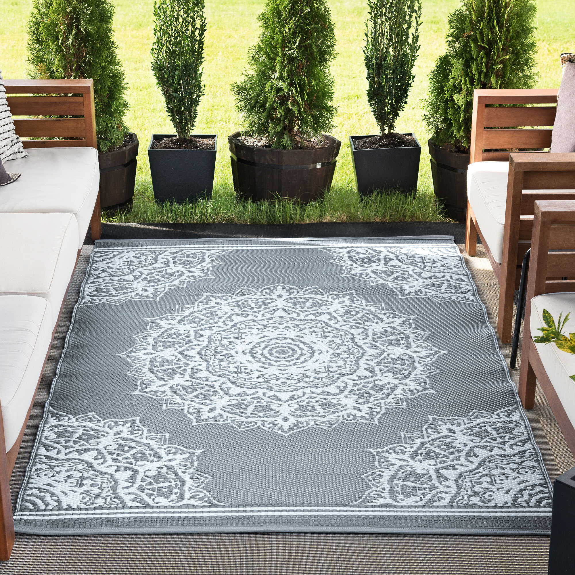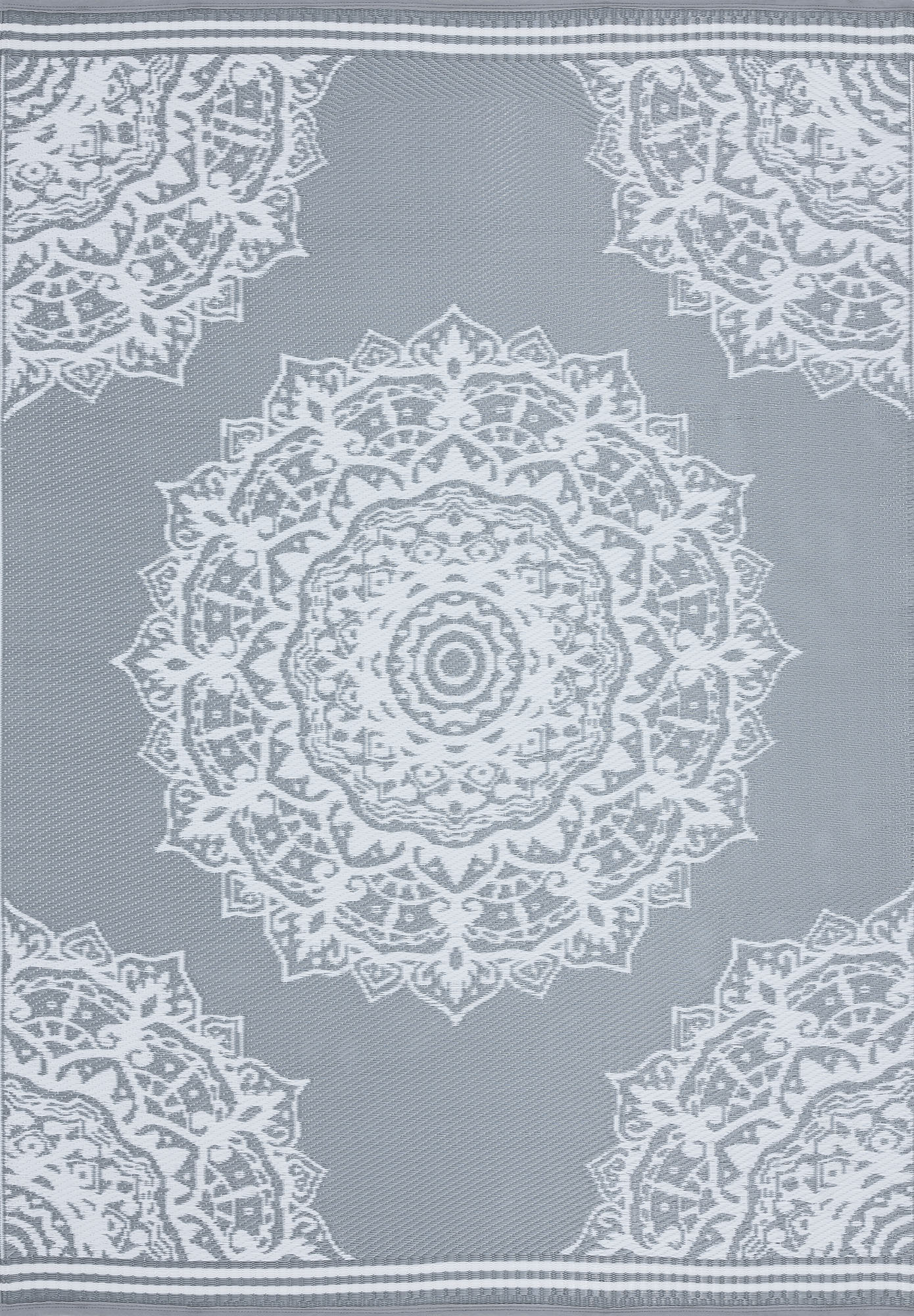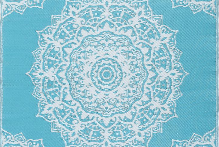 Sweet lace medallions adorn this indoor outdoor endurance area rug that is suitable for any room. Built to achieve and treated with UV resistance to stay vibrant. Perfect for a family room, sunroom, porch, deck, den, living room, playroom, nursery. May be cleaned outside with mild detergent and garden hose, allow to dry thoroughly. Spot clean with mild detergent and water when necessary.