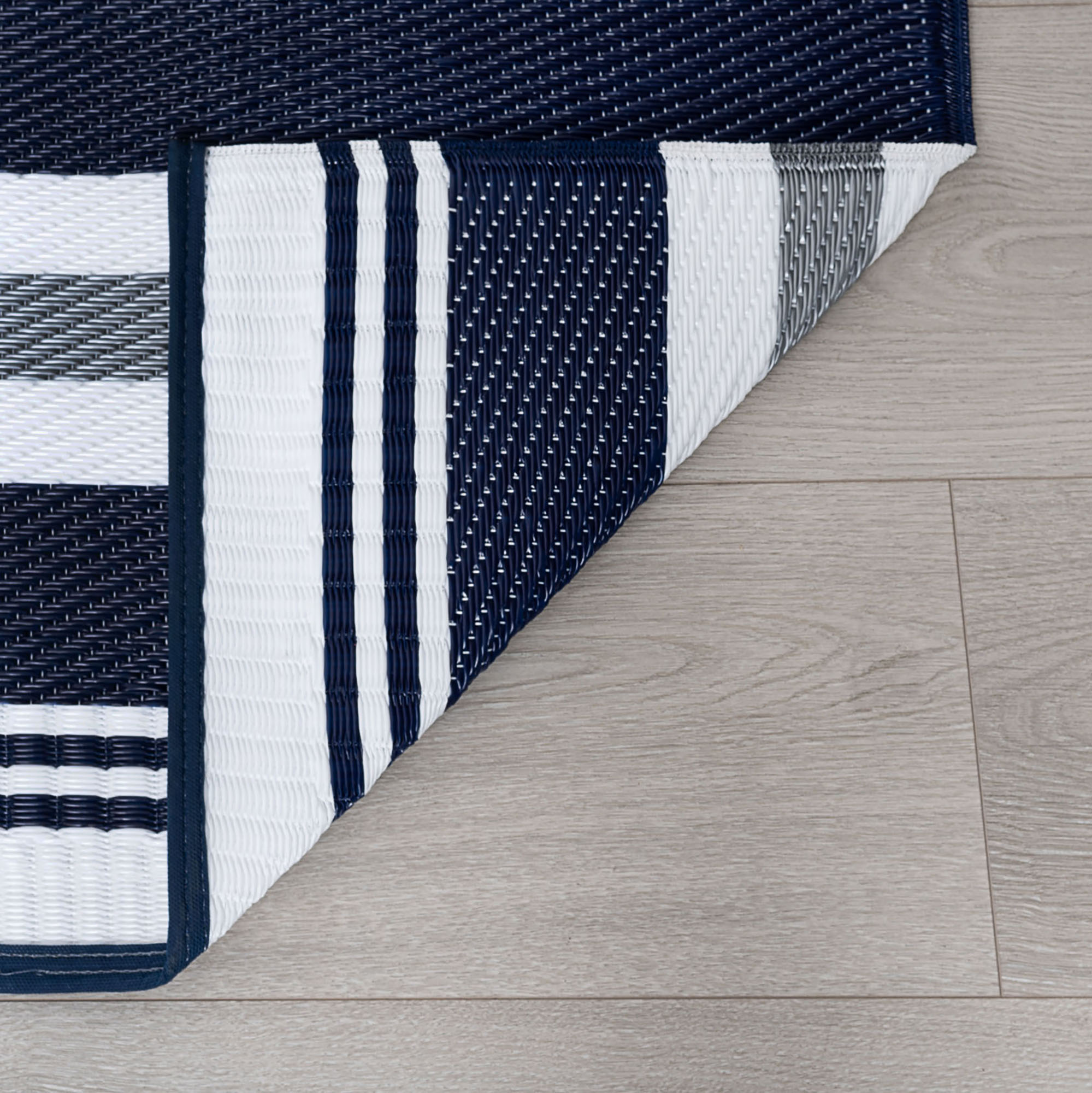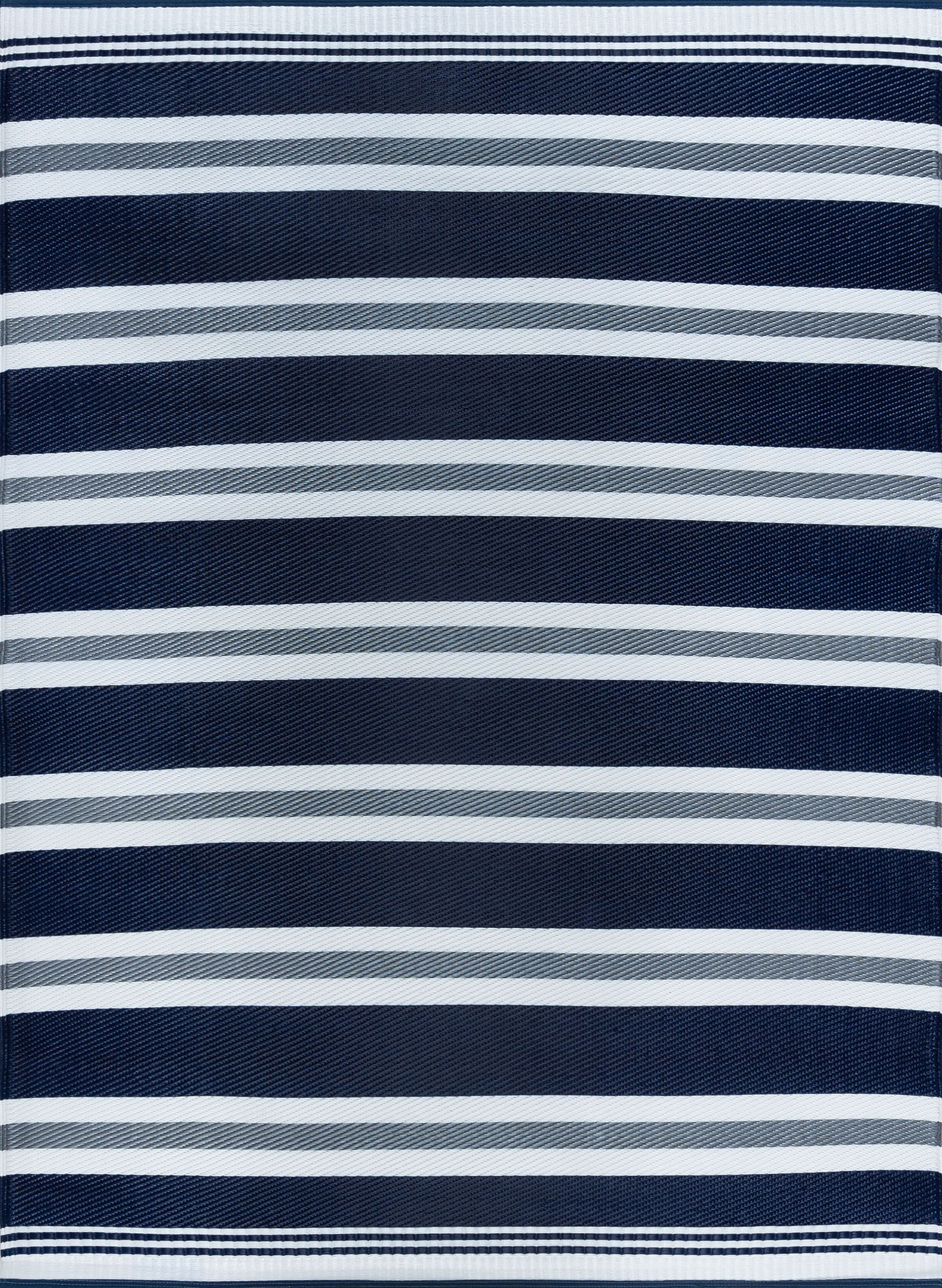 The distinctive striped pattern of this indoor outdoor area rug will add a touch of class to any space. Built to achieve and treated with UV resistance to stay vibrant. Perfect for a family room, sunroom, porch, deck, den, living room, playroom, nursery. May be cleaned outside with mild detergent and garden hose, allow to dry thoroughly. Spot clean with mild detergent and water when necessary.