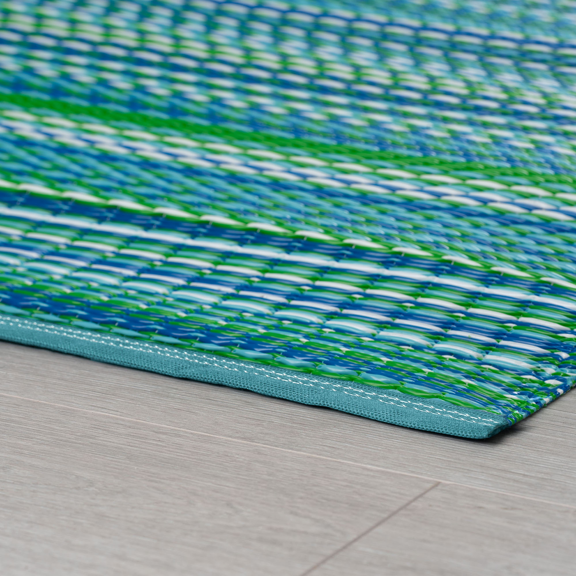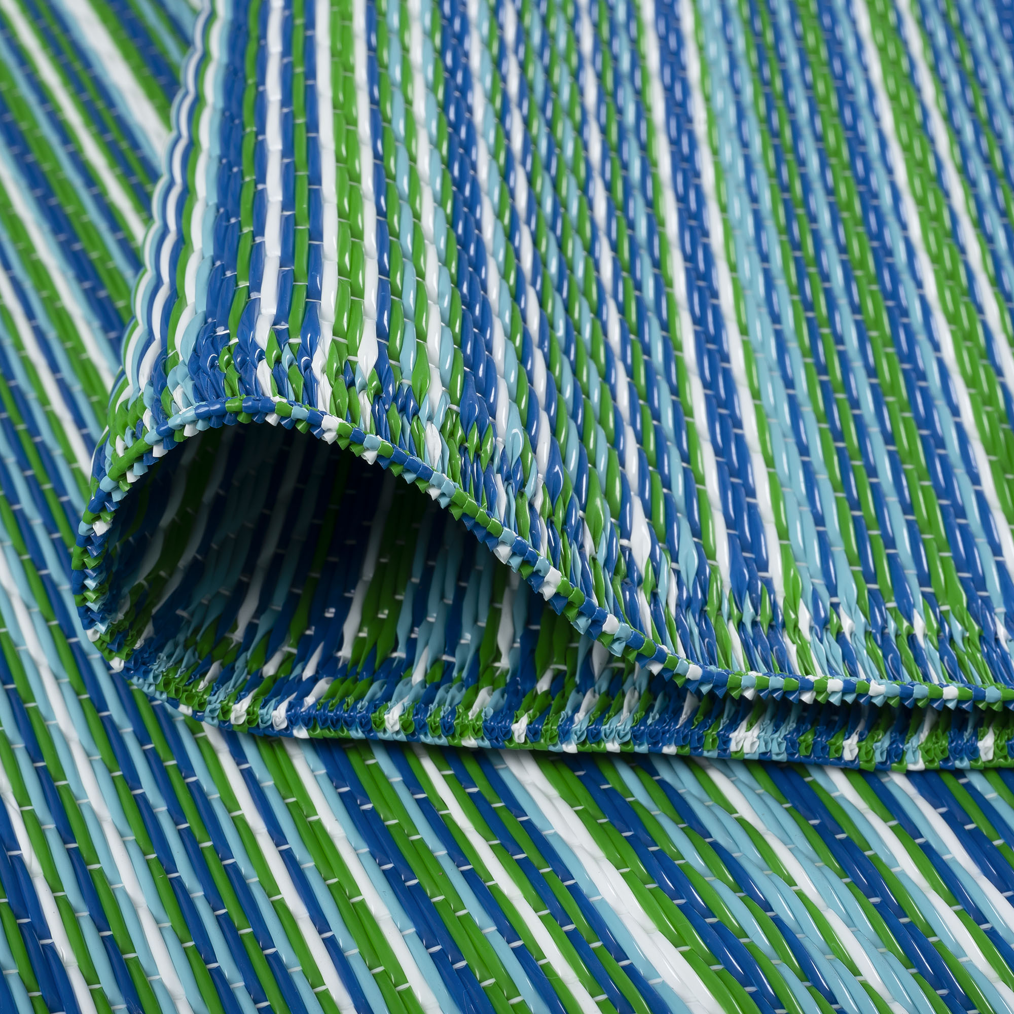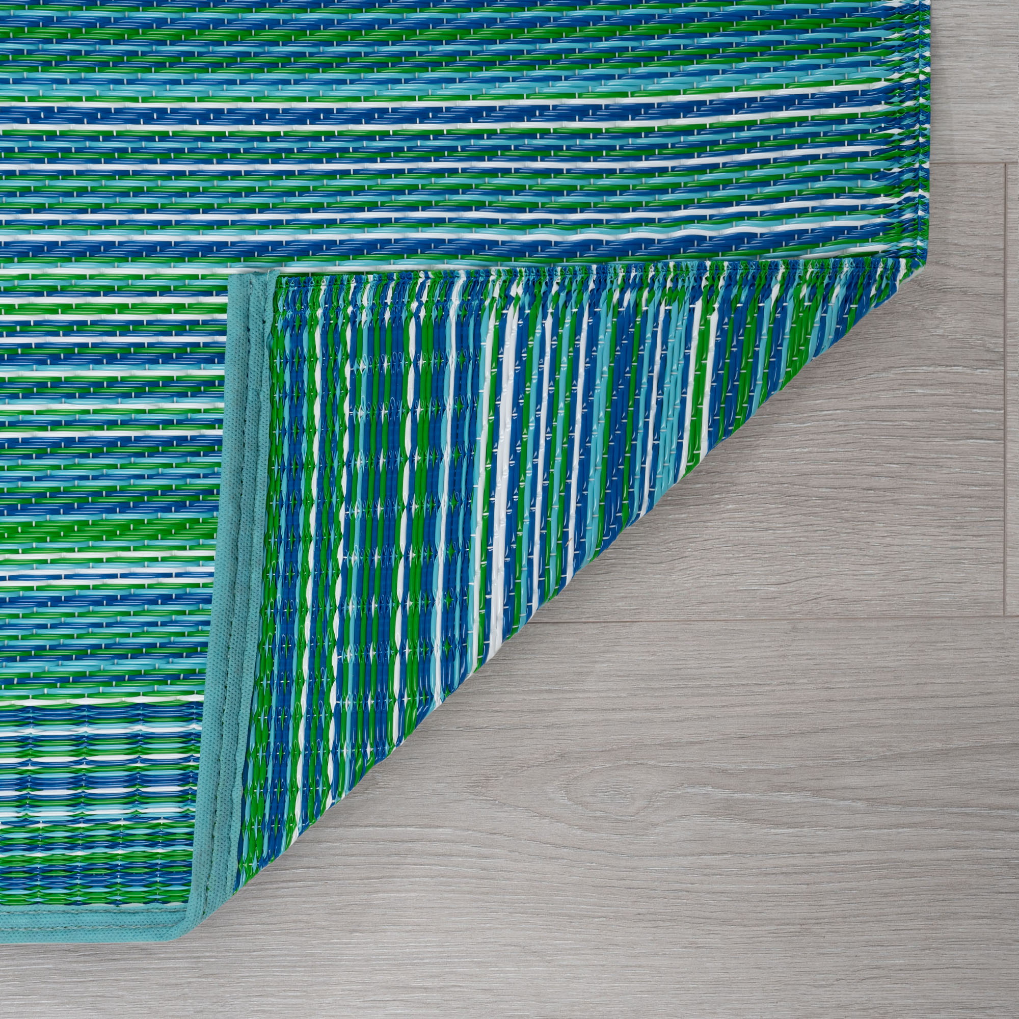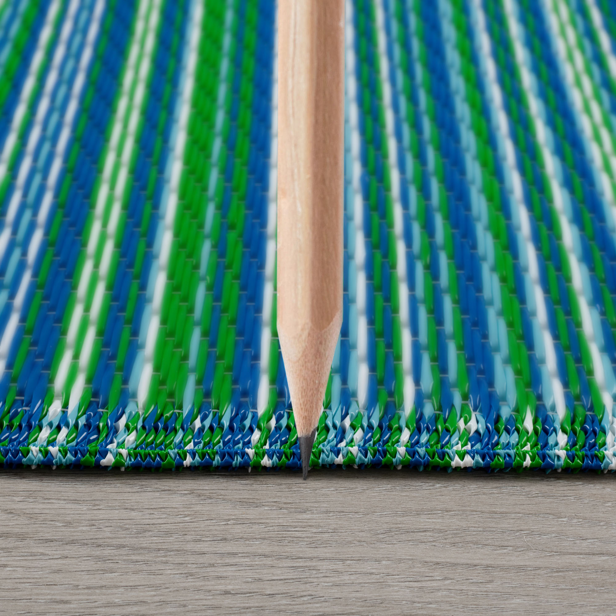 This trendy urban stripe area rug has unlimited appeal and is a winning addition to any indoor outdoor space. Built to achieve and treated with UV resistance to stay vibrant. Perfect for a family room, sunroom, porch, deck, den, living room, playroom, nursery. May be cleaned outside with mild detergent and garden hose, allow to dry thoroughly. Spot clean with mild detergent and water when necessary.