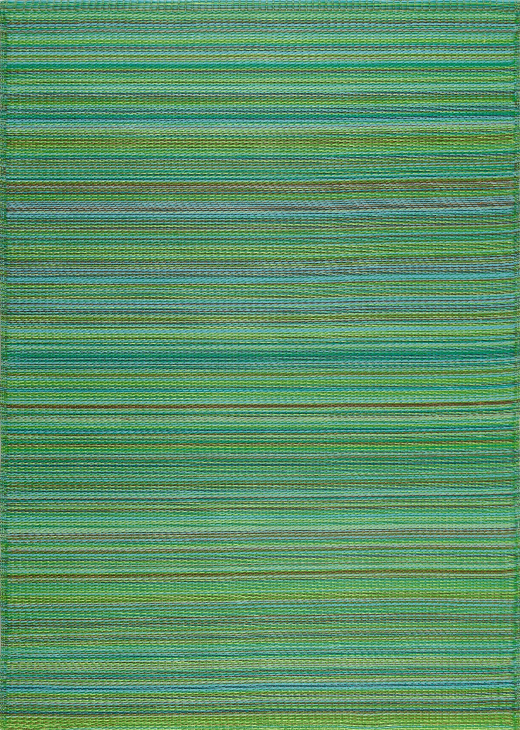 This trendy urban stripe area rug has unlimited appeal and is a winning addition to any indoor outdoor space. Built to achieve and treated with UV resistance to stay vibrant. Perfect for a family room, sunroom, porch, deck, den, living room, playroom, nursery. May be cleaned outside with mild detergent and garden hose, allow to dry thoroughly. Spot clean with mild detergent and water when necessary.