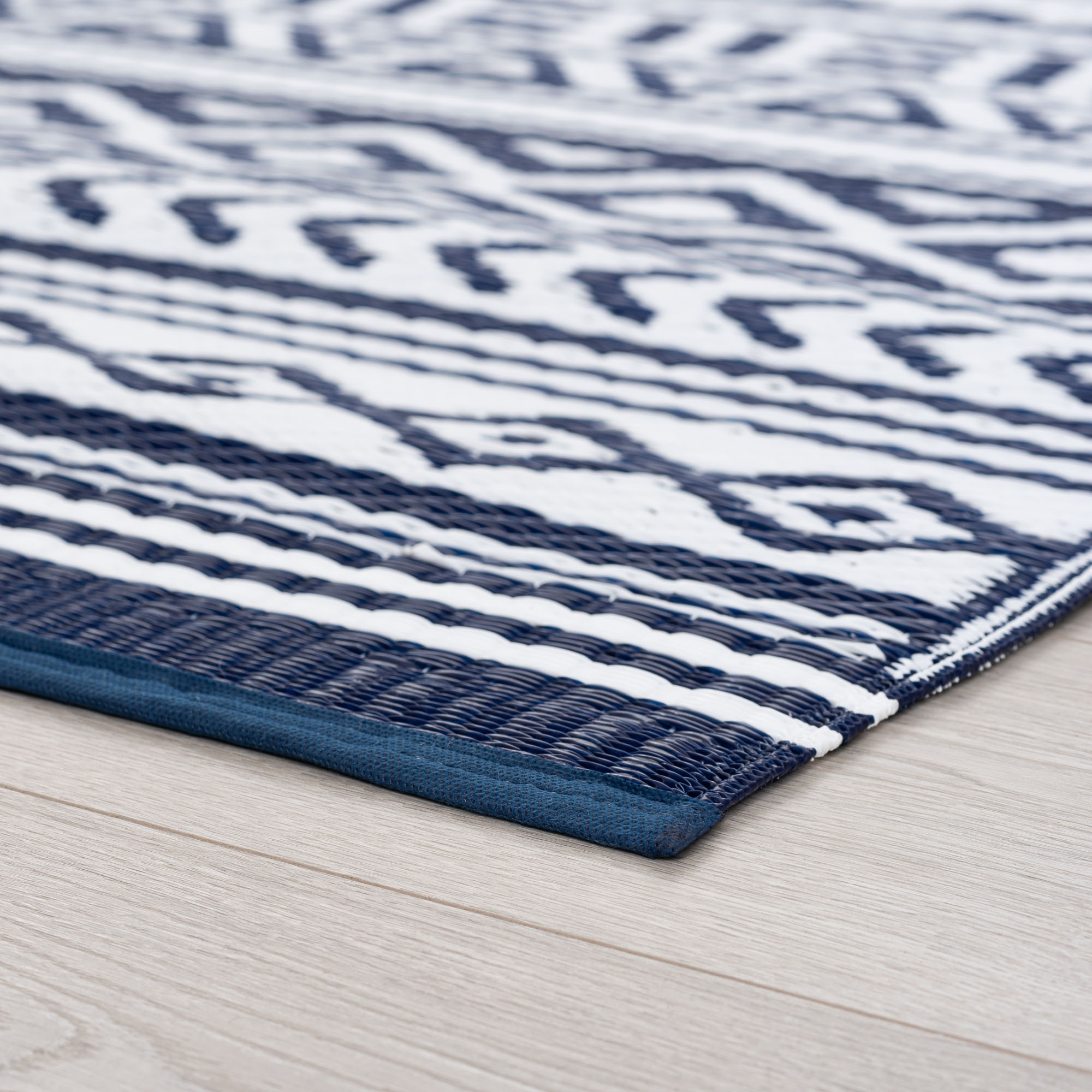 This versatile Scandinavian pattern indoor outdoor area rug fits well with tribal decor or any contemporary setting. Built to achieve and treated with UV resistance to stay vibrant. Perfect for a family room, sunroom, porch, deck, den, living room, playroom, nursery. May be cleaned outside with mild detergent and garden hose, allow to dry thoroughly. Spot clean with mild detergent and water when necessary.