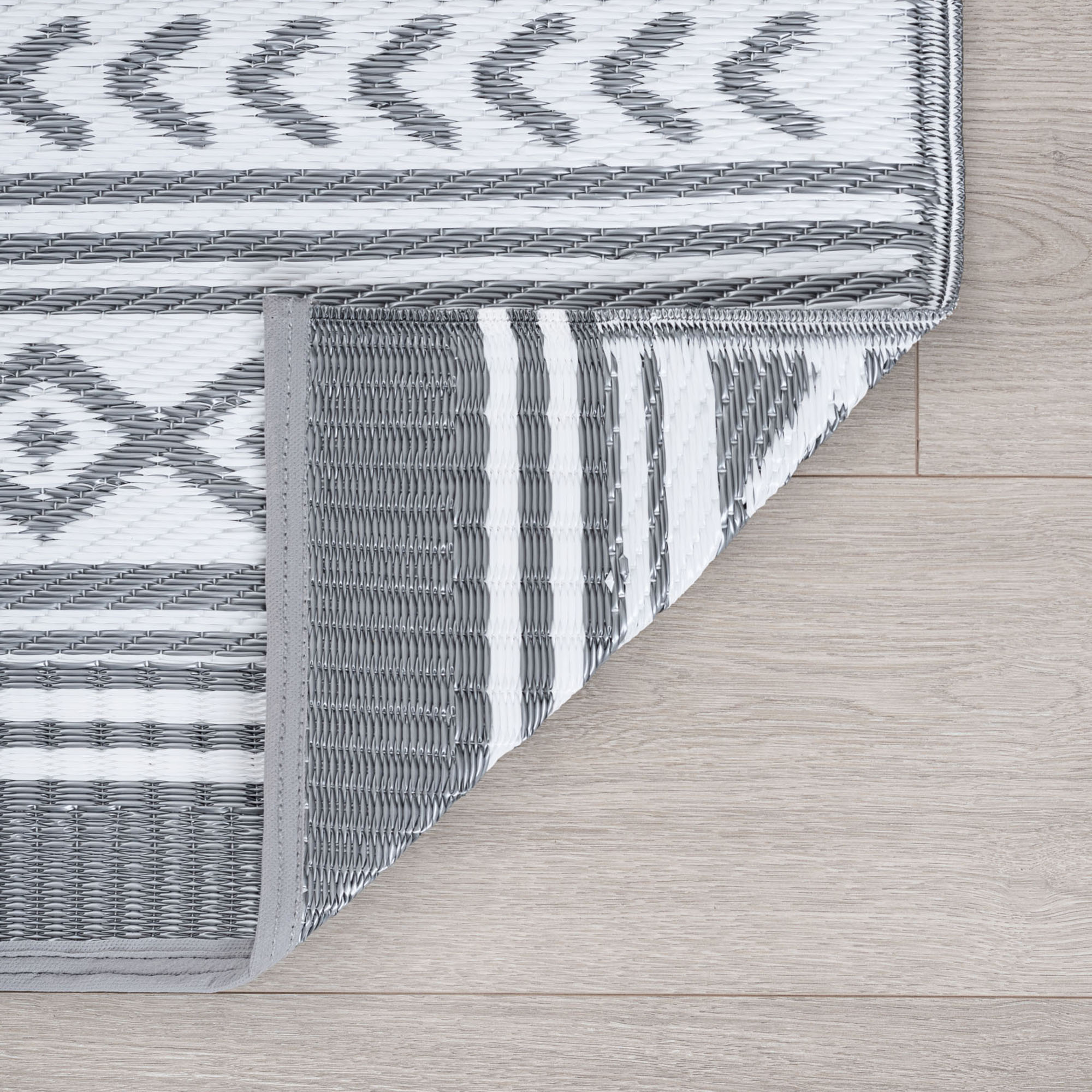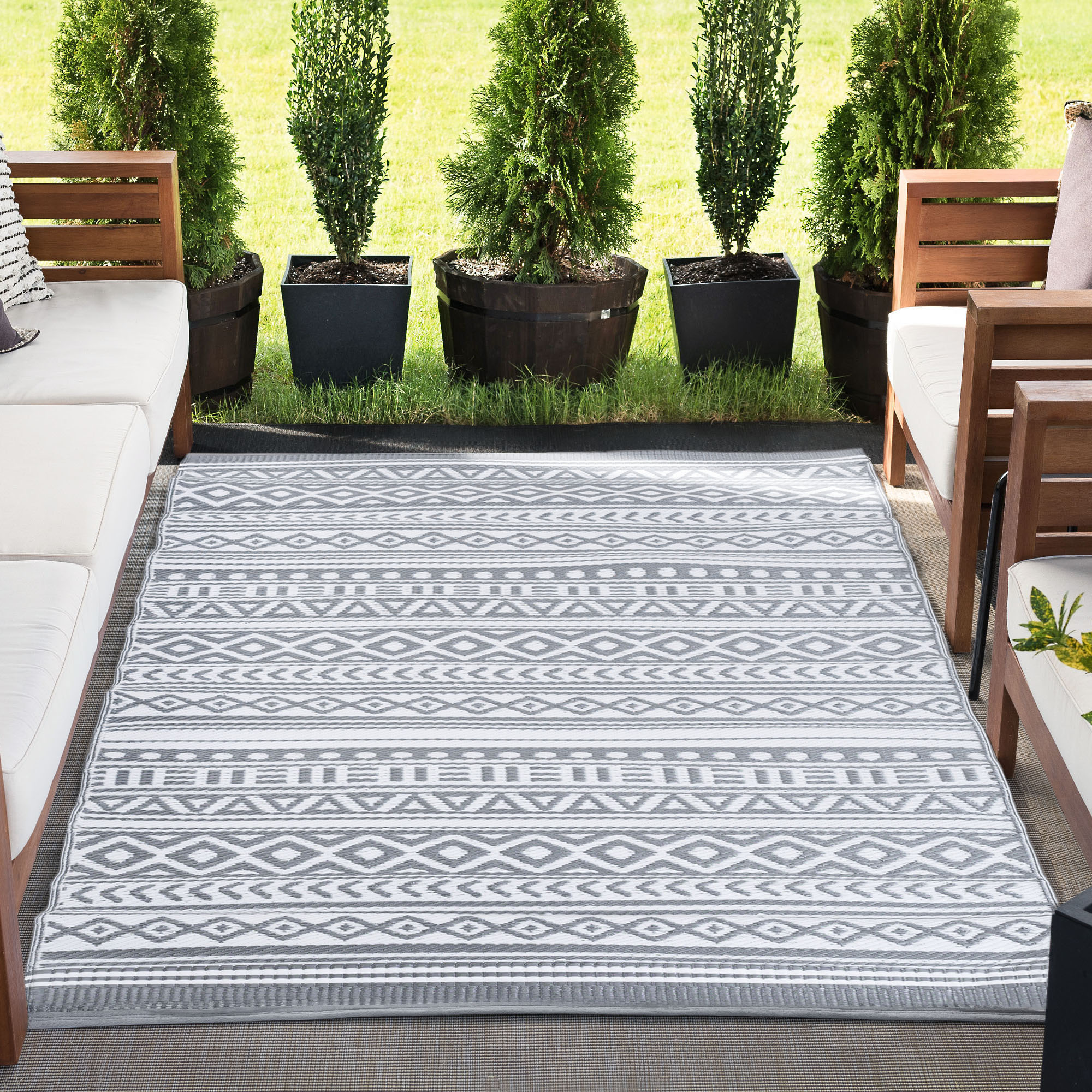This versatile Scandinavian pattern indoor outdoor area rug fits well with tribal decor or any contemporary setting. Built to achieve and treated with UV resistance to stay vibrant. Perfect for a family room, sunroom, porch, deck, den, living room, playroom, nursery. May be cleaned outside with mild detergent and garden hose, allow to dry thoroughly. Spot clean with mild detergent and water when necessary.