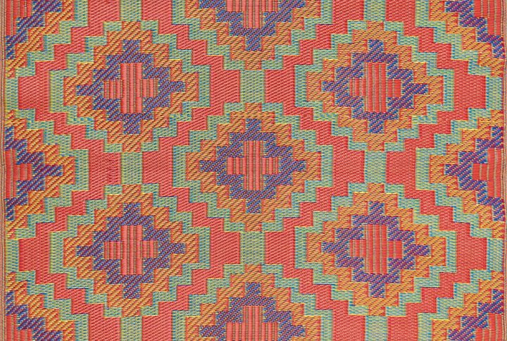 This versatile Scandinavian pattern indoor outdoor area rug fits well with tribal decor or any contemporary setting. Built to achieve and treated with UV resistance to stay vibrant. Perfect for a family room, sunroom, porch, deck, den, living room, playroom, nursery. May be cleaned outside with mild detergent and garden hose, allow to dry thoroughly. Spot clean with mild detergent and water when necessary.