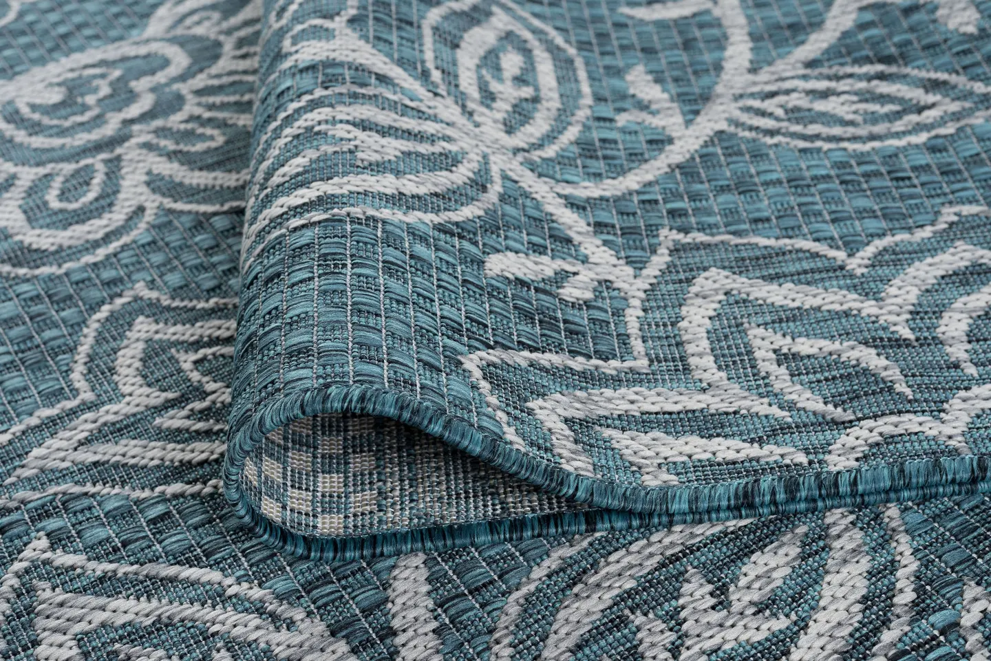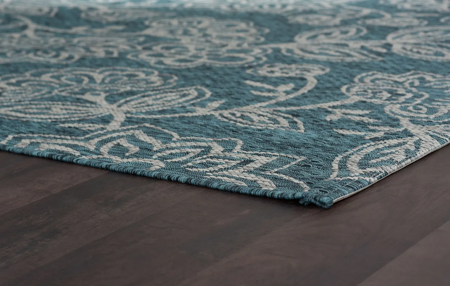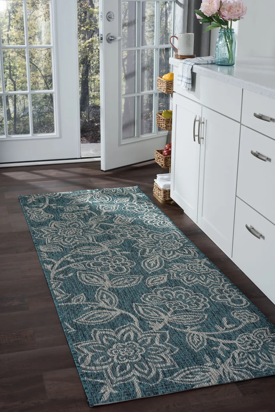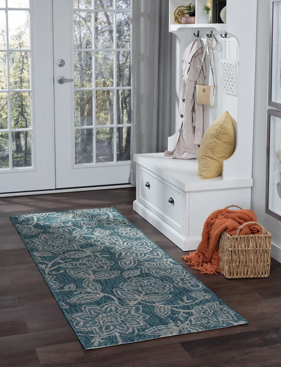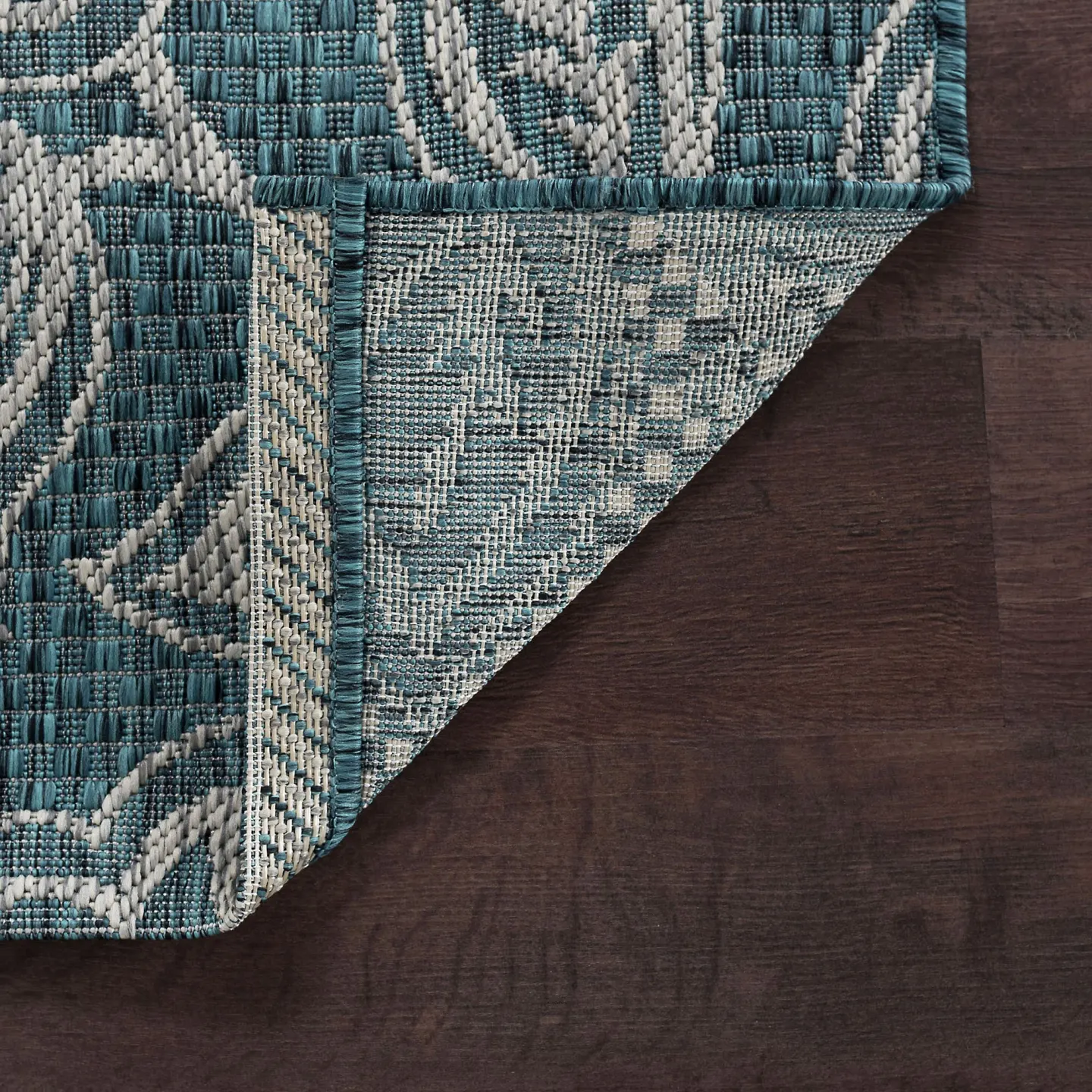 Create a botanical ambiance with this indoor or outdoor floral area rug. The bold, large scale design can be transitional or contemporary. Perfect for an indoor mudroom, entryway, hallway, family room, kids room, basement, or anywhere you are looking for a durable and appealing solution. Machine made, power loomed of 100% polypropylene to stay fresh outdoors on a patio, porch, sunroom, portico, pavilion or deck. Clean with mild detergent and hose with water. Do not bleach.