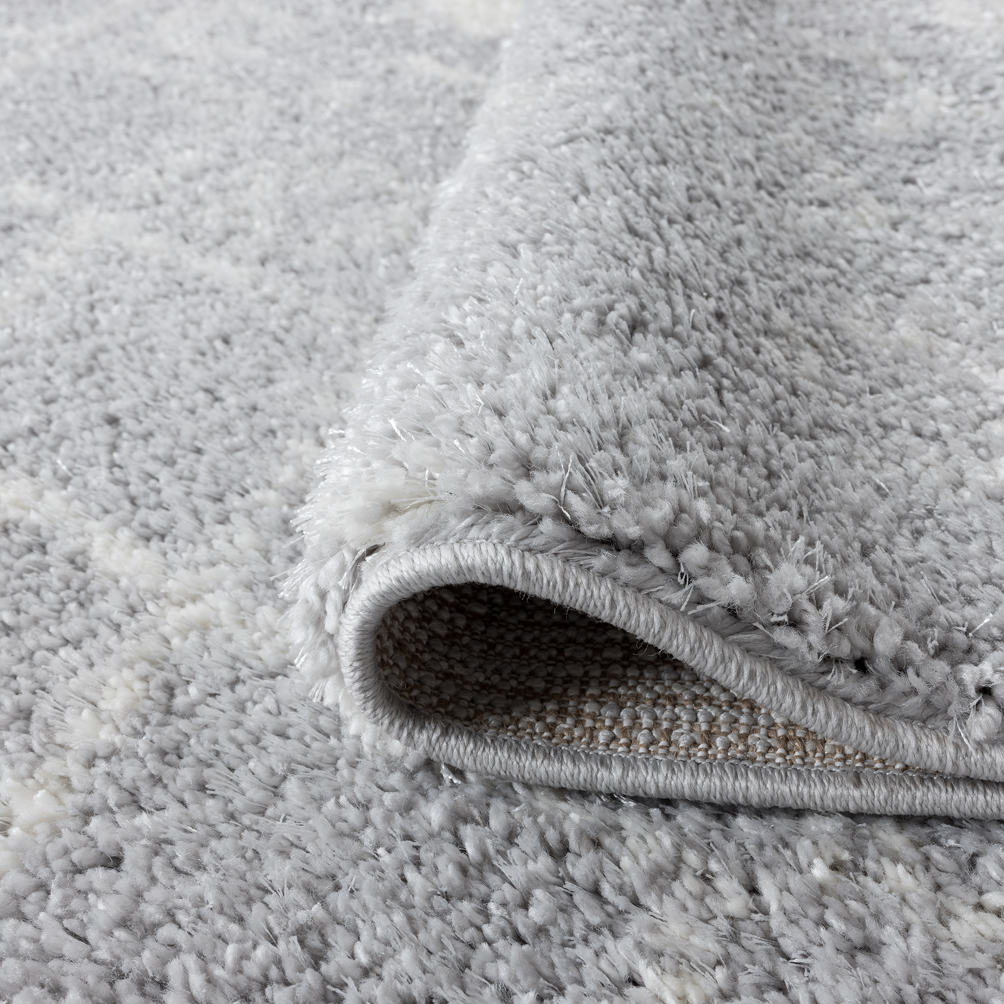 This trendy native tribal pattern has been tranlsated into an ultra soft shag area rug with boho charm. The 80% polypropylene, 20% polyester yarn feels plush underfoot. An artisan addition to Farmhouse, Contemporary, Scandinavian, Moroccan, and many other decorating styles. Jute backing offers durability and the fibers are naturally stain resistant to keep it looking fresh for many years to come. Vacuum on highest pile setting to remove debris, taking care not to catch the edges in the beater bar. Spot clean when necessary with mild detergent and water.
