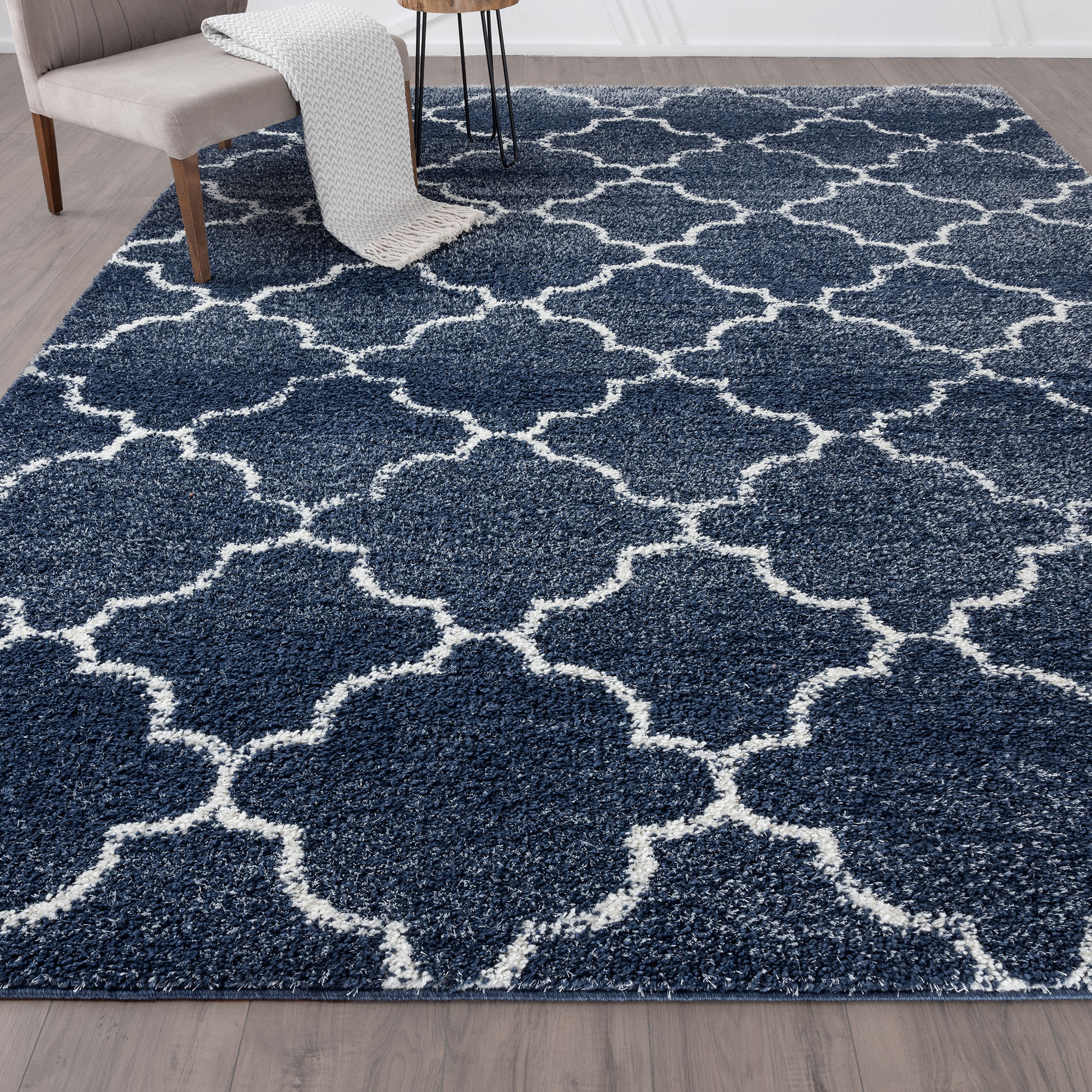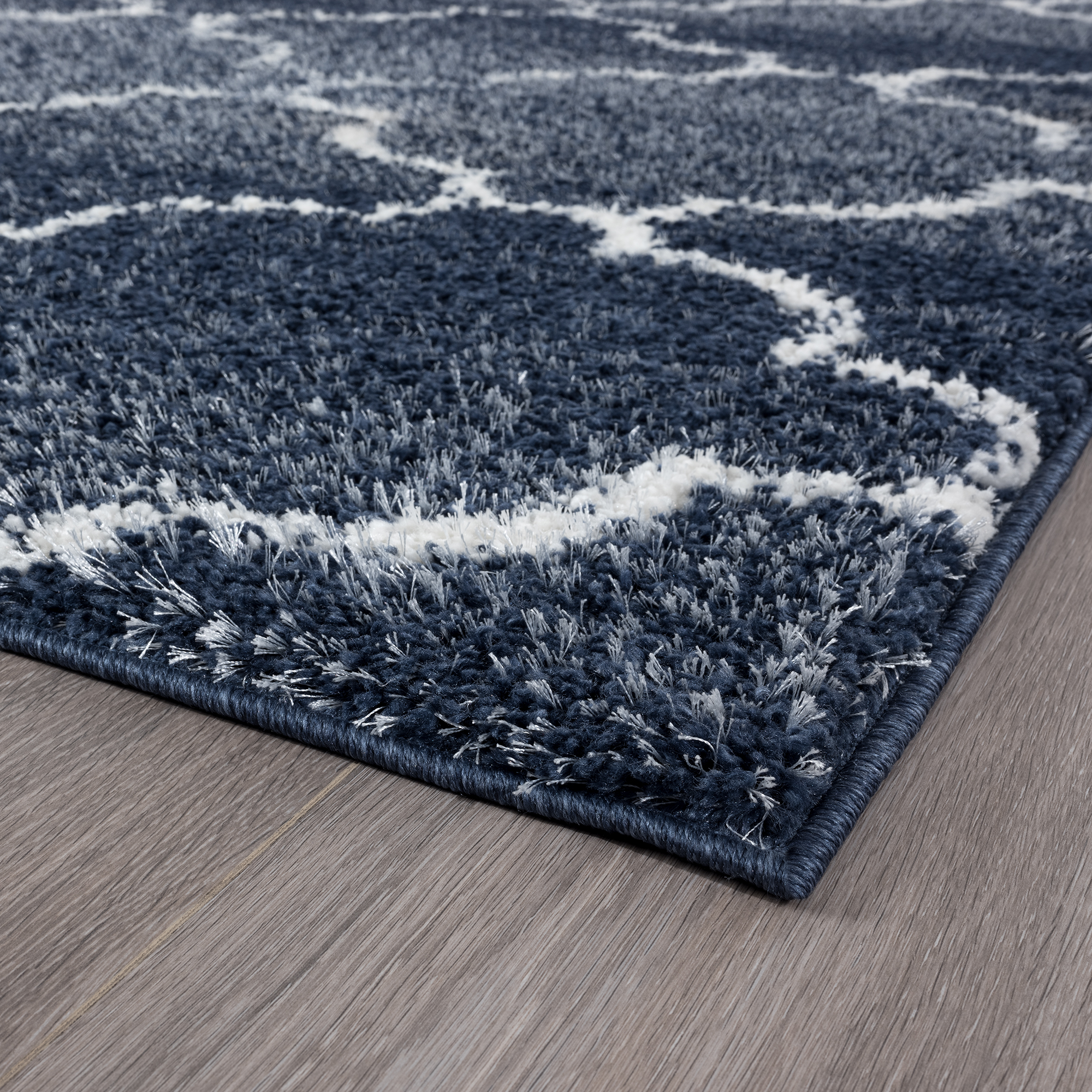 A true classic, this trellis moroccan tile pattern area rug has been refreshed into an ultra soft shag with wide appeal. The 80% polypropylene, 20% polyester yarn feels plush underfoot. A versatile addition to Farmhouse, Contemporary, Scandinavian, Moroccan, and many other decorating styles. Jute backing offers durability and the fibers are naturally stain resistant to keep it looking fresh for many years to come. Vacuum on highest pile setting to remove debris, taking care not to catch the edges in the beater bar. Spot clean when necessary with mild detergent and water.