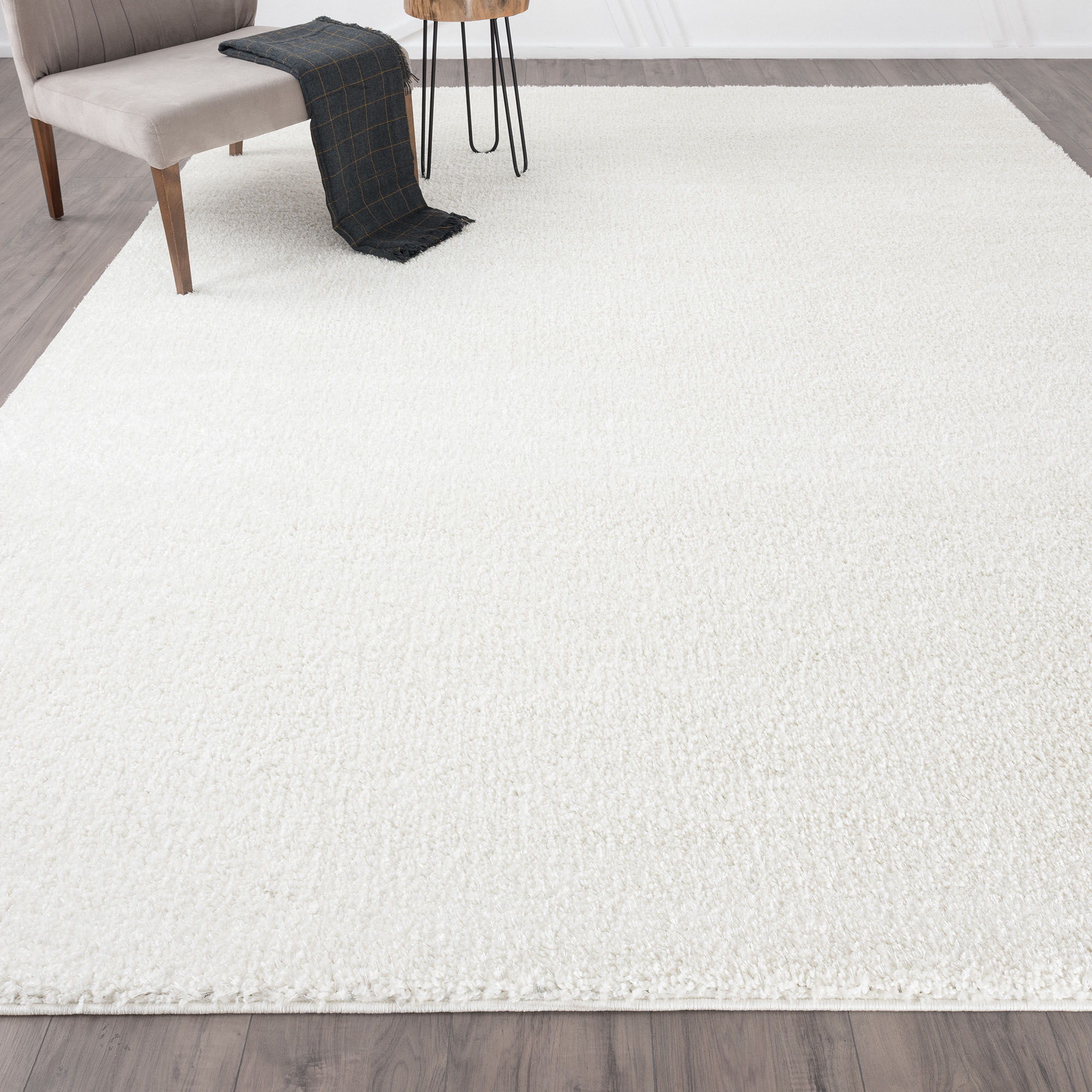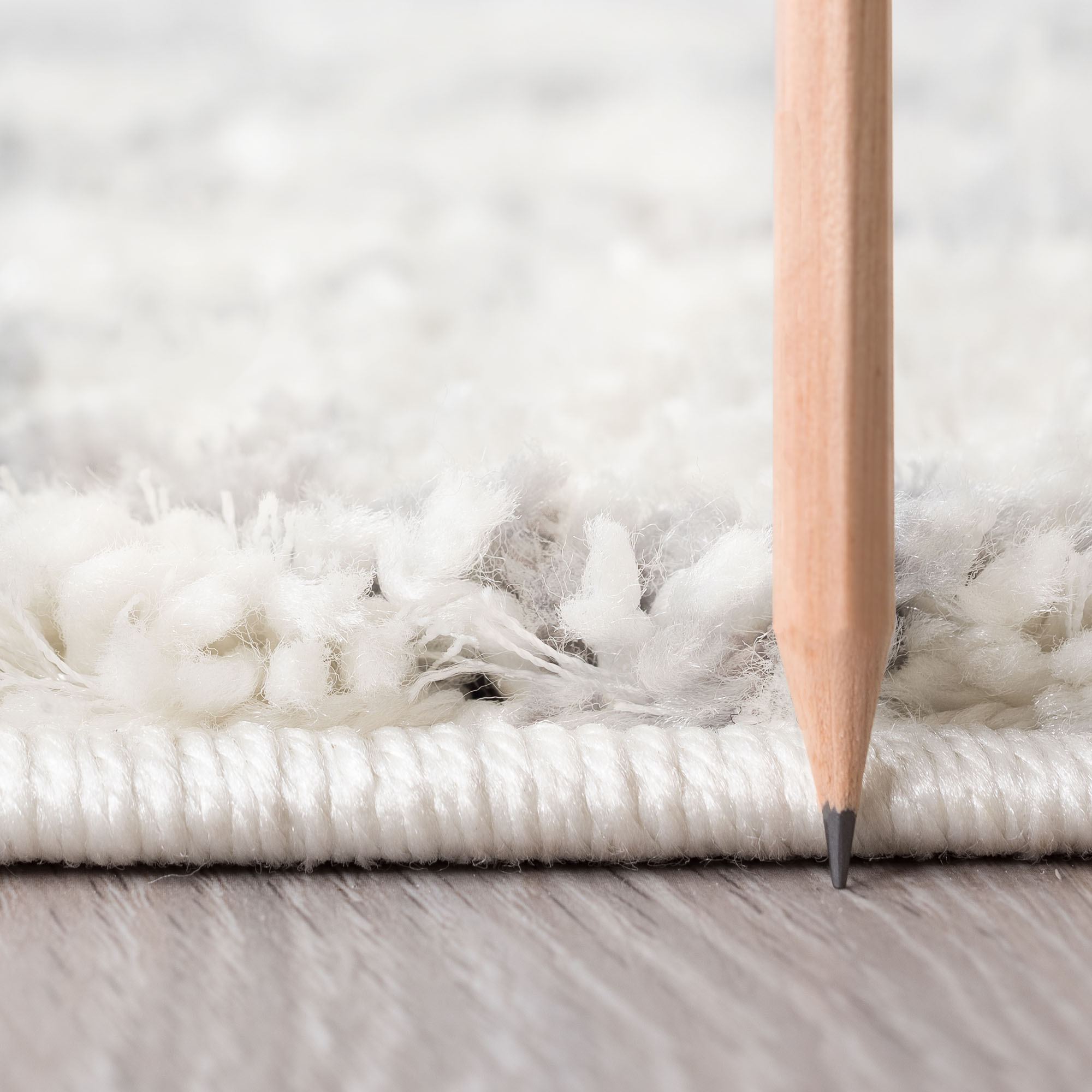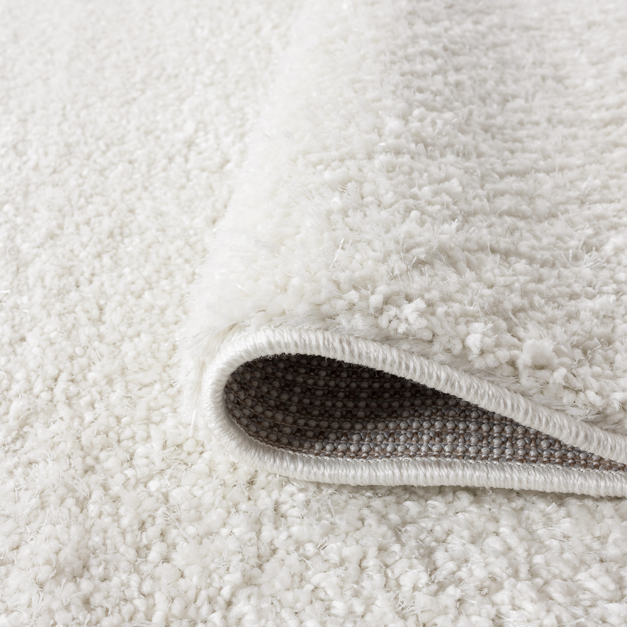 This ultra soft shag solid color area rug is versatile and appealing. The 80% polypropylene, 20% polyester yarn feels plush underfoot. A skillful addition to Farmhouse, Contemporary, Scandinavian, Moroccan, and many other decorating styles. Jute backing offers durability and the fibers are naturally stain resistant to keep it looking fresh for many years to come. Vacuum on highest pile setting to remove debris, taking care not to catch the edges in the beater bar. Spot clean when necessary with mild detergent and water.