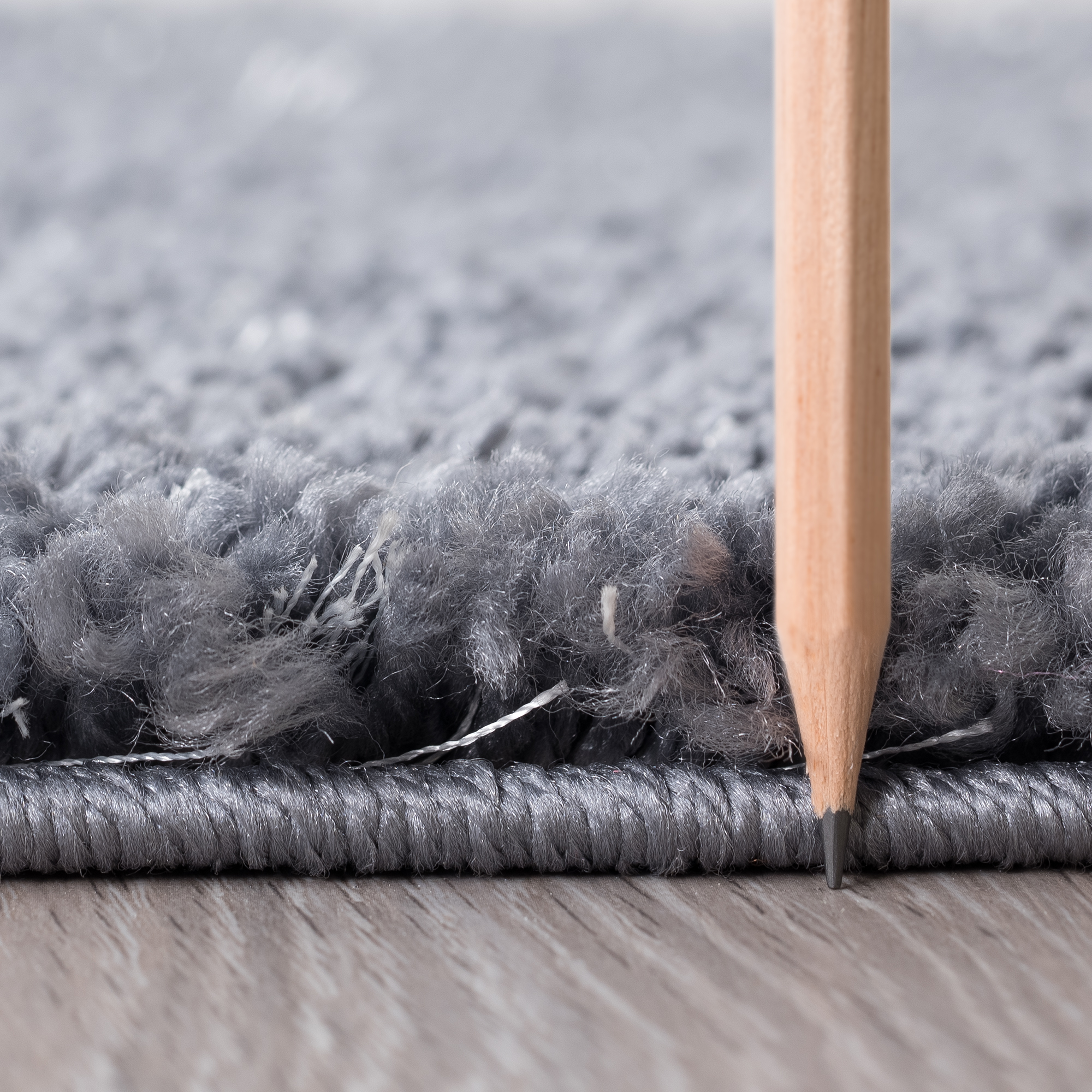 This ultra soft shag solid color area rug is versatile and appealing. The 80% polypropylene, 20% polyester yarn feels plush underfoot. A skillful addition to Farmhouse, Contemporary, Scandinavian, Moroccan, and many other decorating styles. Jute backing offers durability and the fibers are naturally stain resistant to keep it looking fresh for many years to come. Vacuum on highest pile setting to remove debris, taking care not to catch the edges in the beater bar. Spot clean when necessary with mild detergent and water.