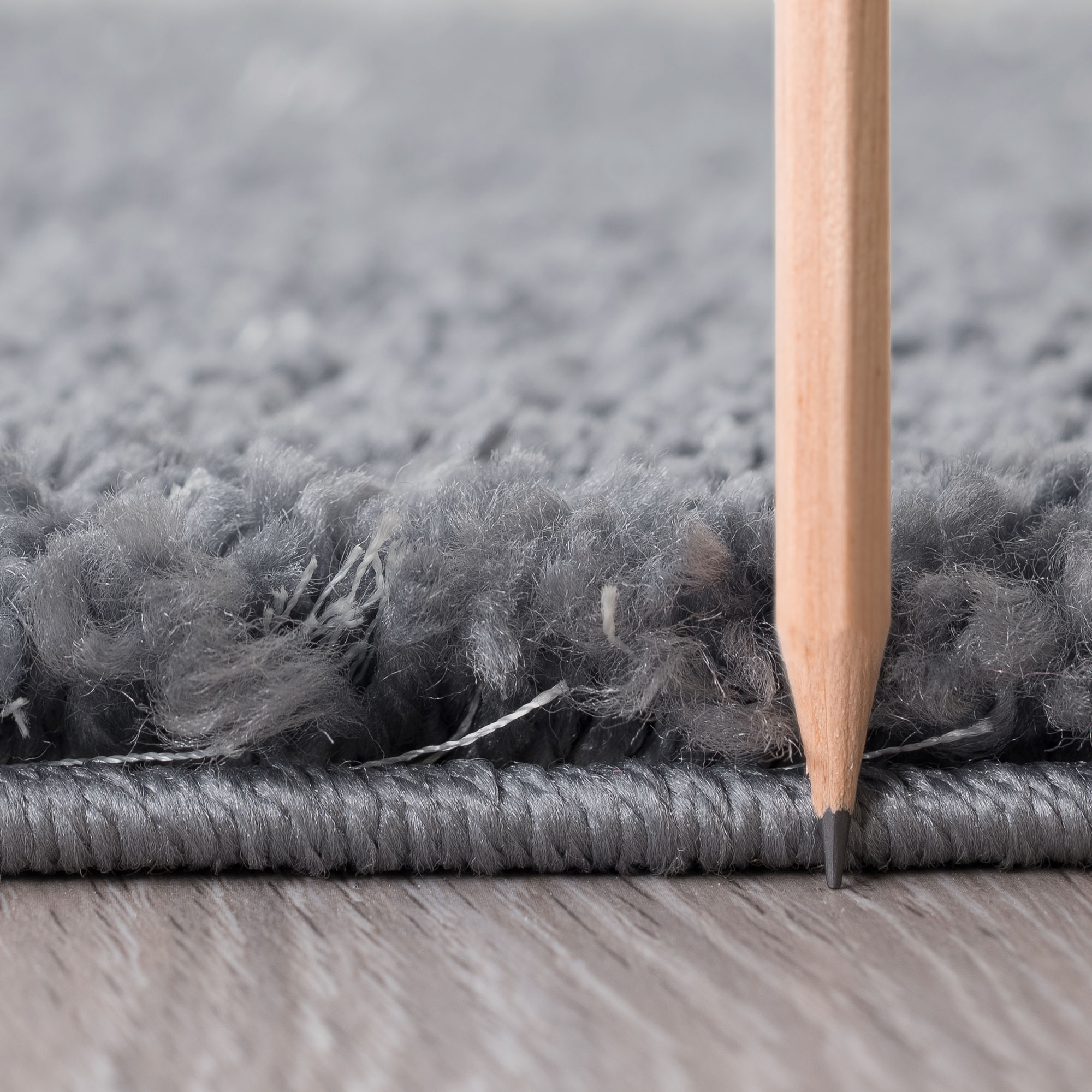 This ultra soft shag solid color area rug is versatile and appealing. The 80% polypropylene, 20% polyester yarn feels plush underfoot. A skillful addition to Farmhouse, Contemporary, Scandinavian, Moroccan, and many other decorating styles. Jute backing offers durability and the fibers are naturally stain resistant to keep it looking fresh for many years to come. Vacuum on highest pile setting to remove debris, taking care not to catch the edges in the beater bar. Spot clean when necessary with mild detergent and water.
